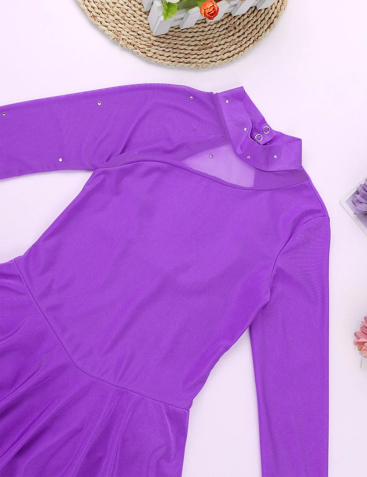 1 слойная эластичная юбка из лайкры прикрепляется к талии. Дизайн с сверкающие стразы «кроше» для того, чтобы повысить уровень доверия и зрелищ.
