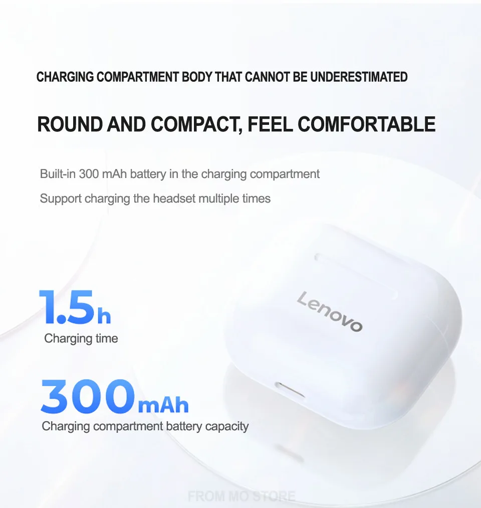 TWS-наушники Lenovo LP40 с поддержкой Bluetooth и зарядным футляром