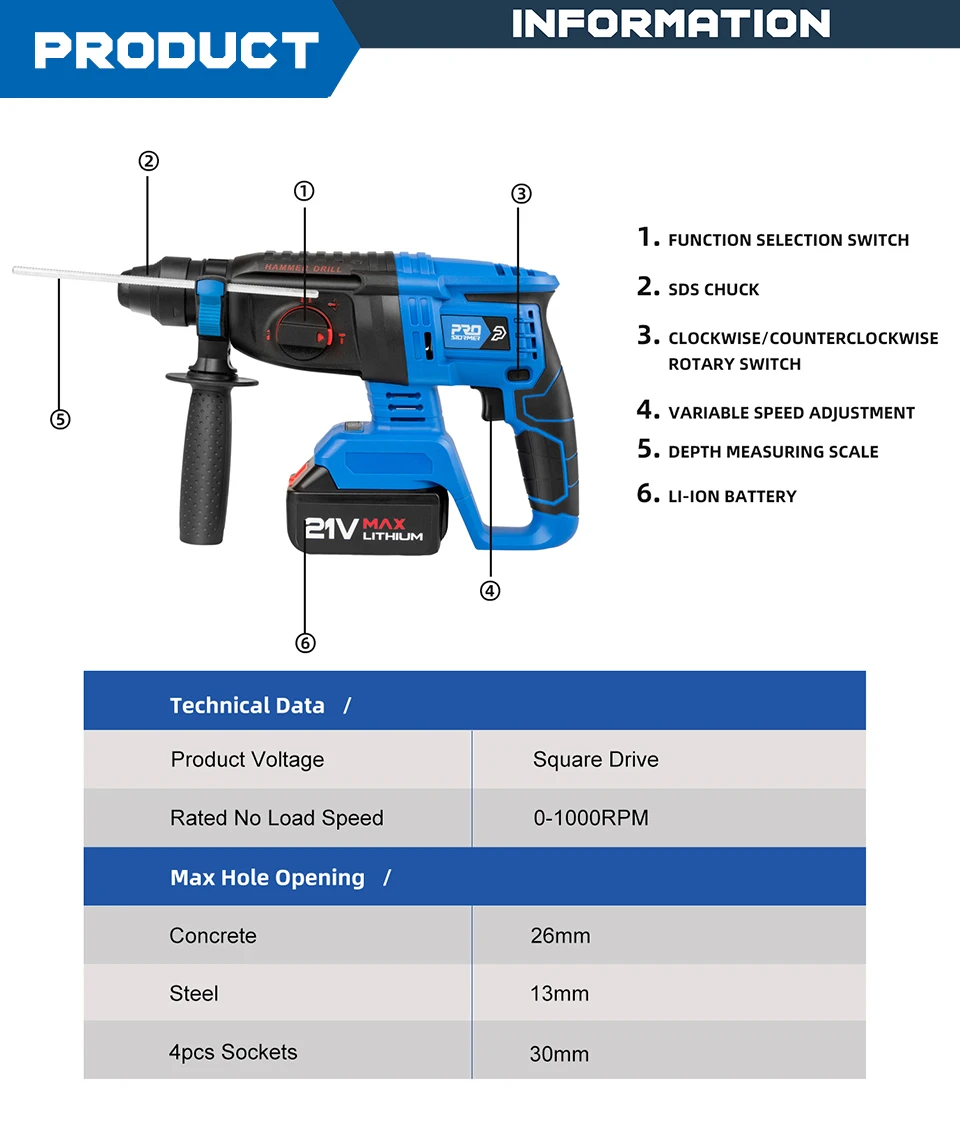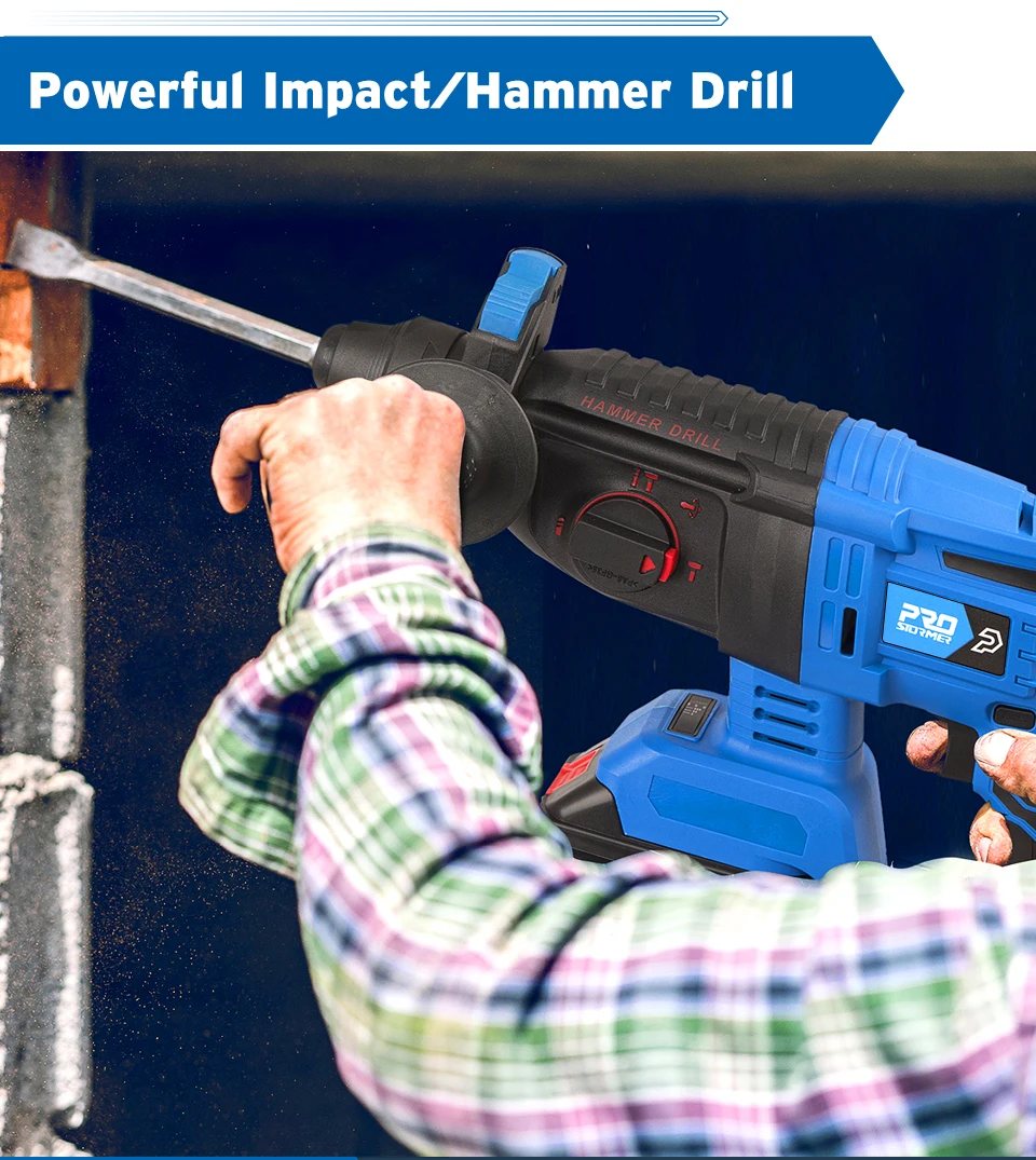 Бесщеточный Ударный Молоток 21 в беспроводной молоток бурильная дрель 3 в 1 многофункциональная стальная бетонная древесина от PROSTORMER