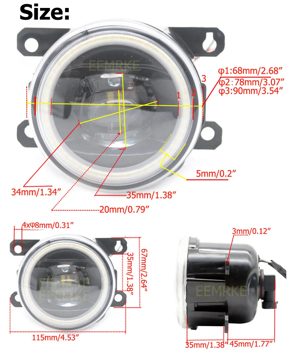 -Мощность: противотуманные Light-30W/пара 15 Вт/сторона; Ангел Eye-10W/пара 5 Вт/сторона;