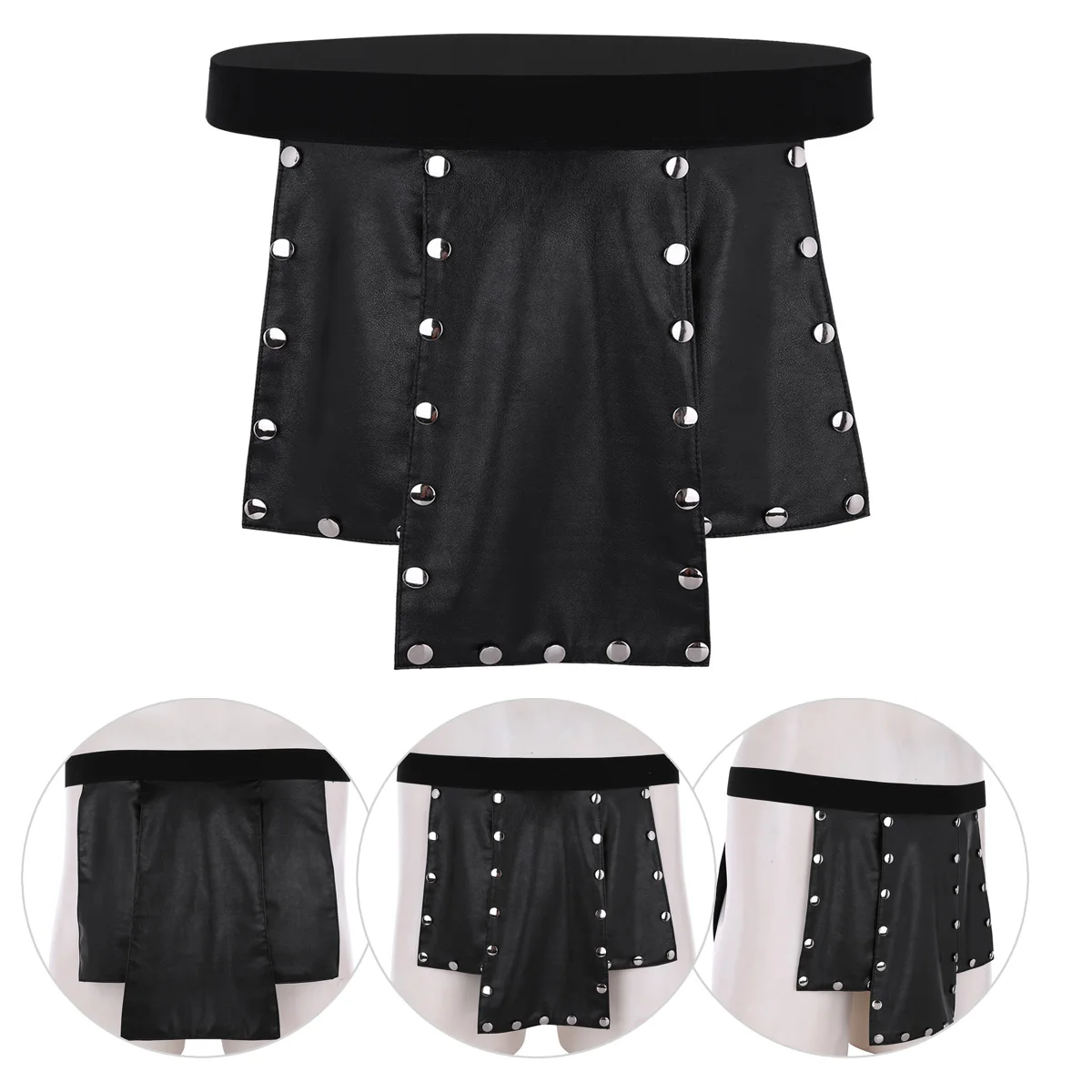Мужское нижнее белье, экзотическое косплейное кожаное нижнее белье Sissy Gay, сексуальное нижнее белье с разрезом, черное Мужское нижнее белье, новинка, мягкое нижнее белье из искусственной кожи с низкой посадкой и металлическими шипами, юбка