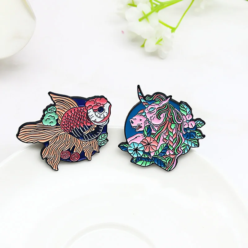 Креативная эмалированная брошь в стиле панк с изображением великолепных животных, золотой рыбки, лошади, растений, цветов, булавки для обмотки, значок из сплава, женское ювелирное изделие, подарок