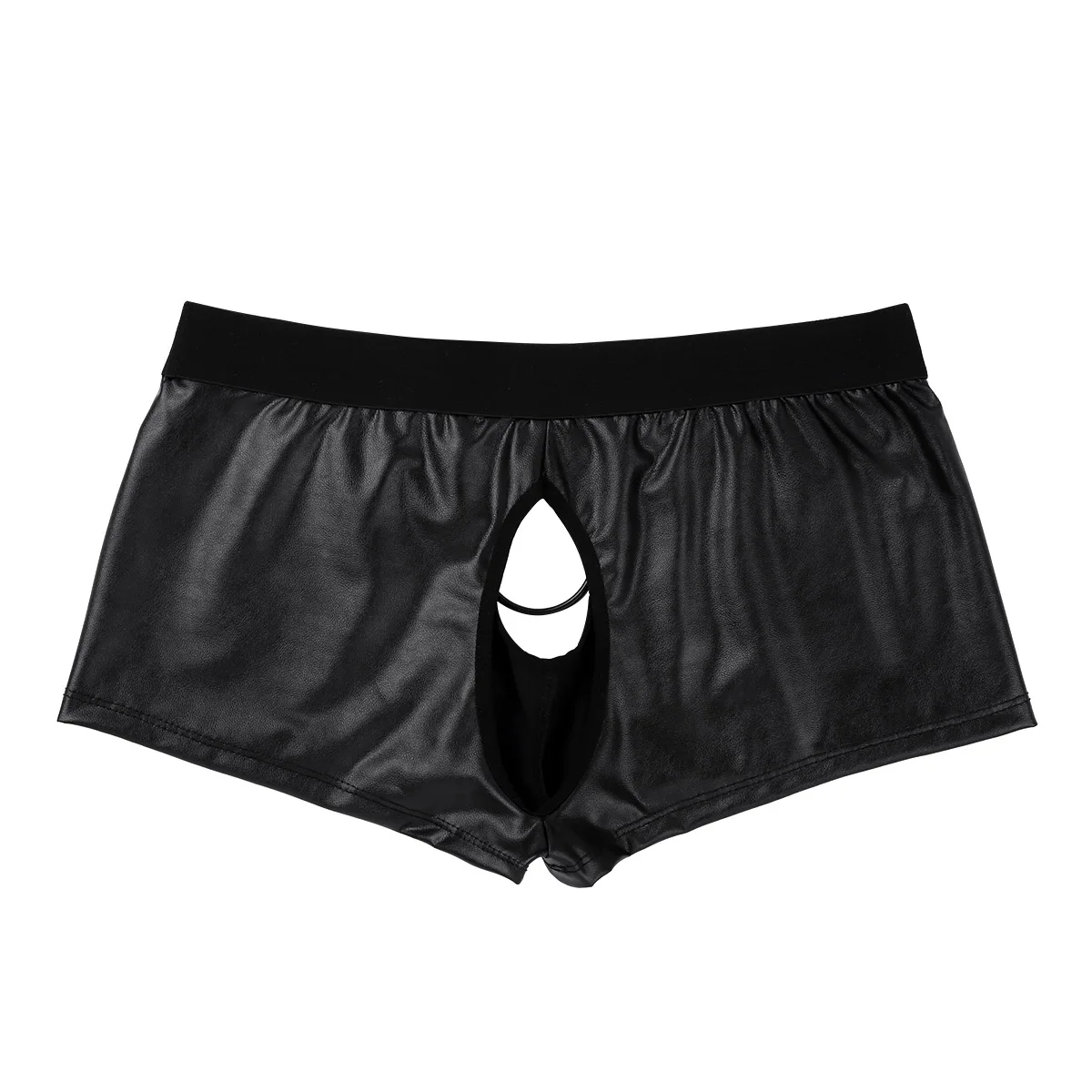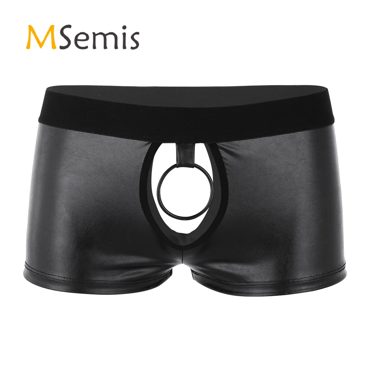 Черное Мужское нижнее белье, нижнее белье из мягкой искусственной кожи, трусы-боксеры с низкой посадкой и металлическим уплотнительным кольцом