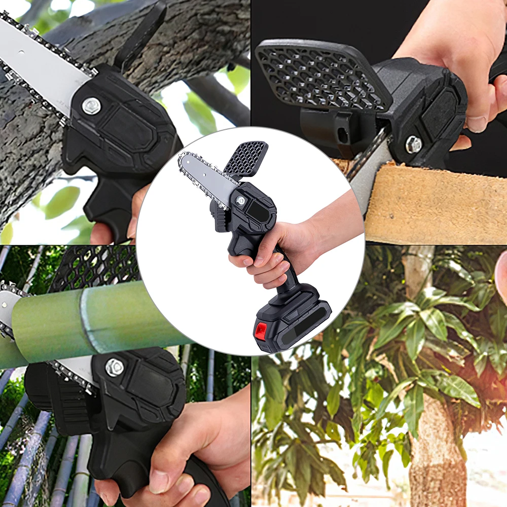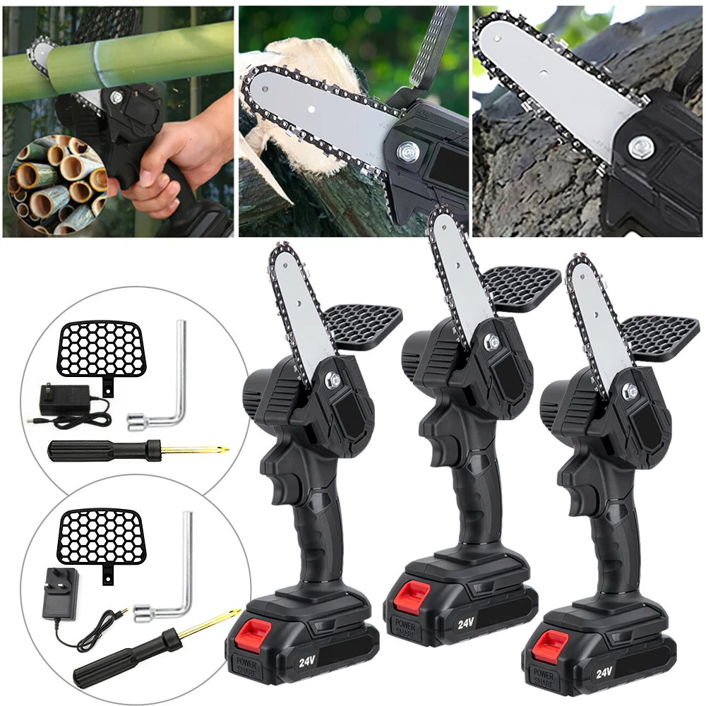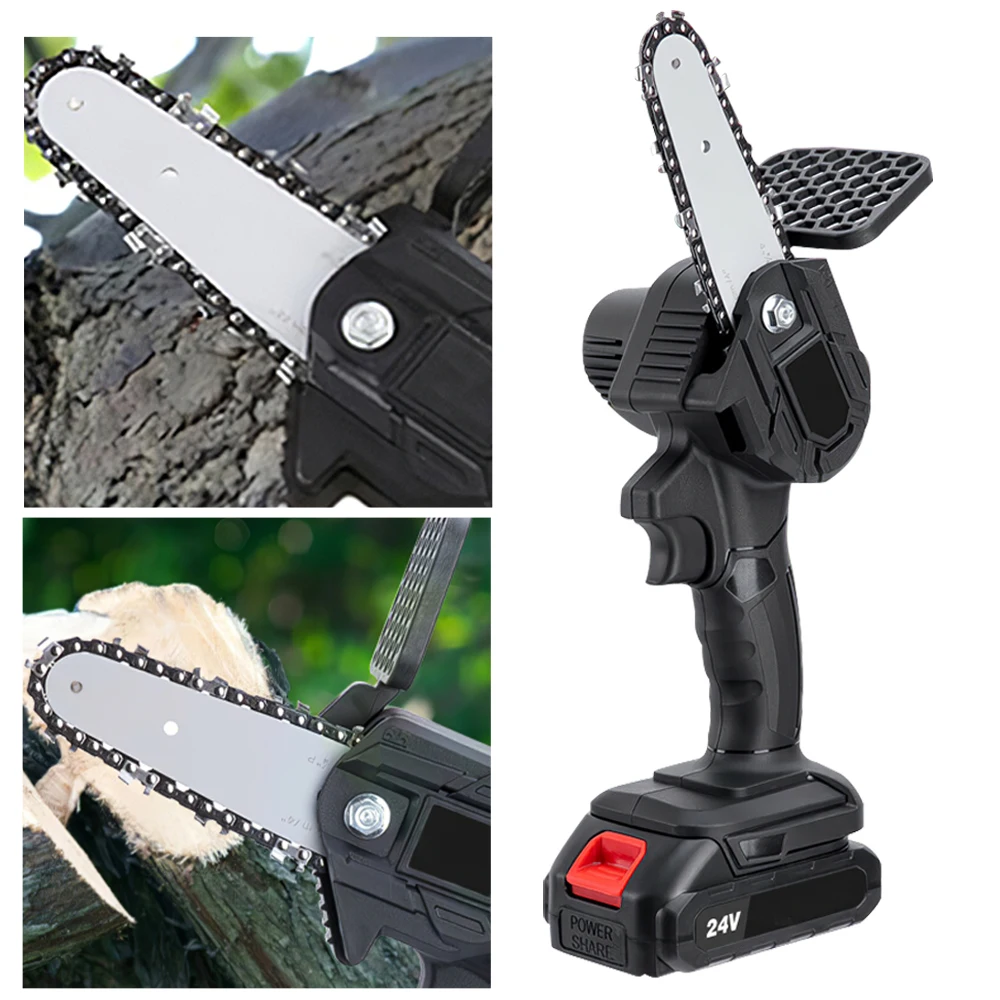 Тип товара: 4-дюймовая портативная односторонняя литиевая электрическая пилаОсобенности: беспроводнойМатериал: АБС-пластик + Металлическая стальная цепьЦвет: черныйАккумулятор: литиевый аккумулятор, 24 В, 2000 мАчНапряжение продукта: 24 ВМощность аккумулятора: 650 ВтРазмер резки: <100 ммВремя работы: одна батарея работает 1,5 часовДлина направляющей пластины: 4 дюймаЭлектрический привод: Сильный магнитный двигательТип направляющей пластины: ЗвездочкаСкорость цепи: 5 м/сЦепь: быстрая регулировкаИсточник питания: аккумулятор/беспроводнойРазмер посылка: около 300*120*110 мм/11,8*4,7 * 4.3inПрименение: бензопила