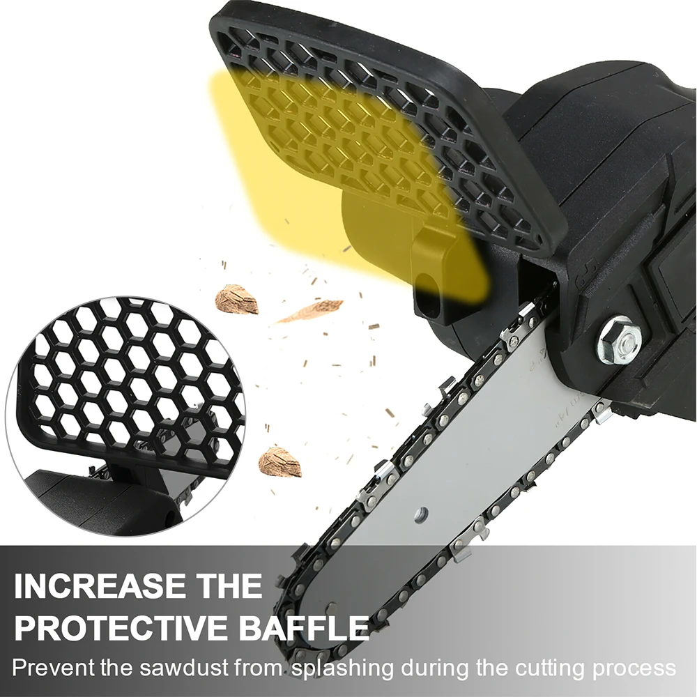 1. Двигатель высокой мощности2. Аккумулятор большой емкости3. Металлическая пластина, износостойкая и прочная4. Регулируемая скорость5. Безопасность пиления, жизненно важная для повышения эффективности вашей работы.6. Пыленепроницаемые Охлаждающие отверстия, эффективное рассеивание тепла, отсутствие пригорания7. Высокая температура не гаснет.8. Износостойкая цепь, высокая твердость, износостойкость, нелегко сломать.9. Двигатель из чистой меди, высокая мощность, быстрая резка для повышения эффективности10. Специальная направляющая пластина, шарик из вольфрамовой стали без смазки11. Легче и портативнее