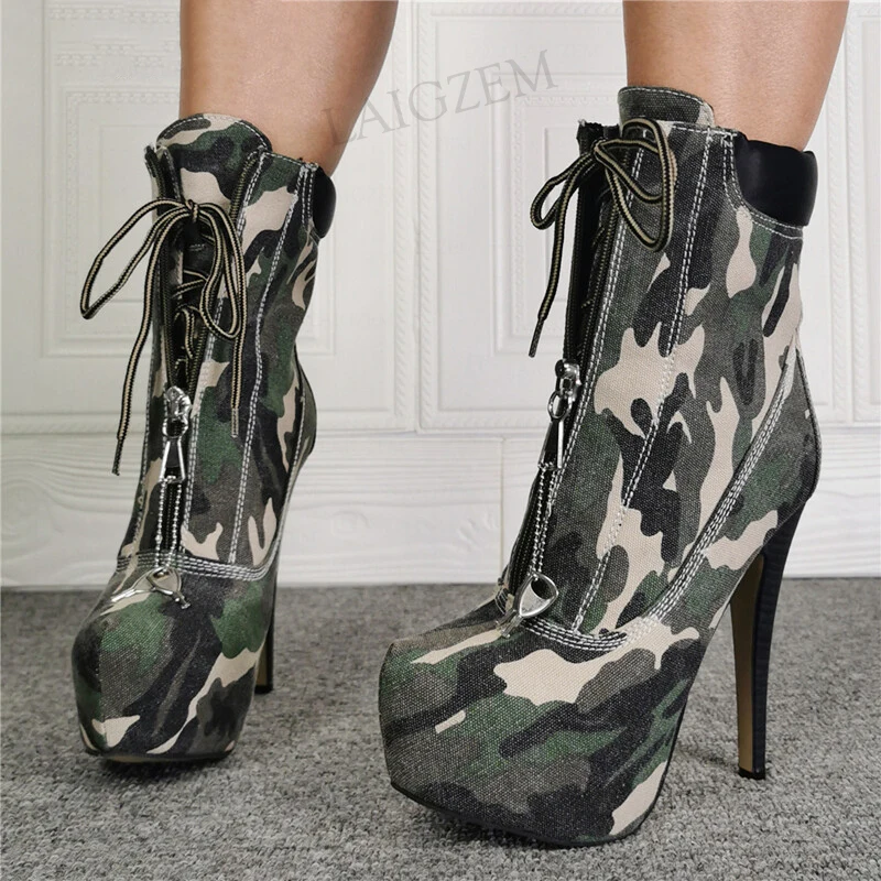 Женские ботильоны на платформе SEIIHEM, камуфляжные короткие ботинки на тонком высоком каблуке, женская обувь, большие размеры 40 42 45 52