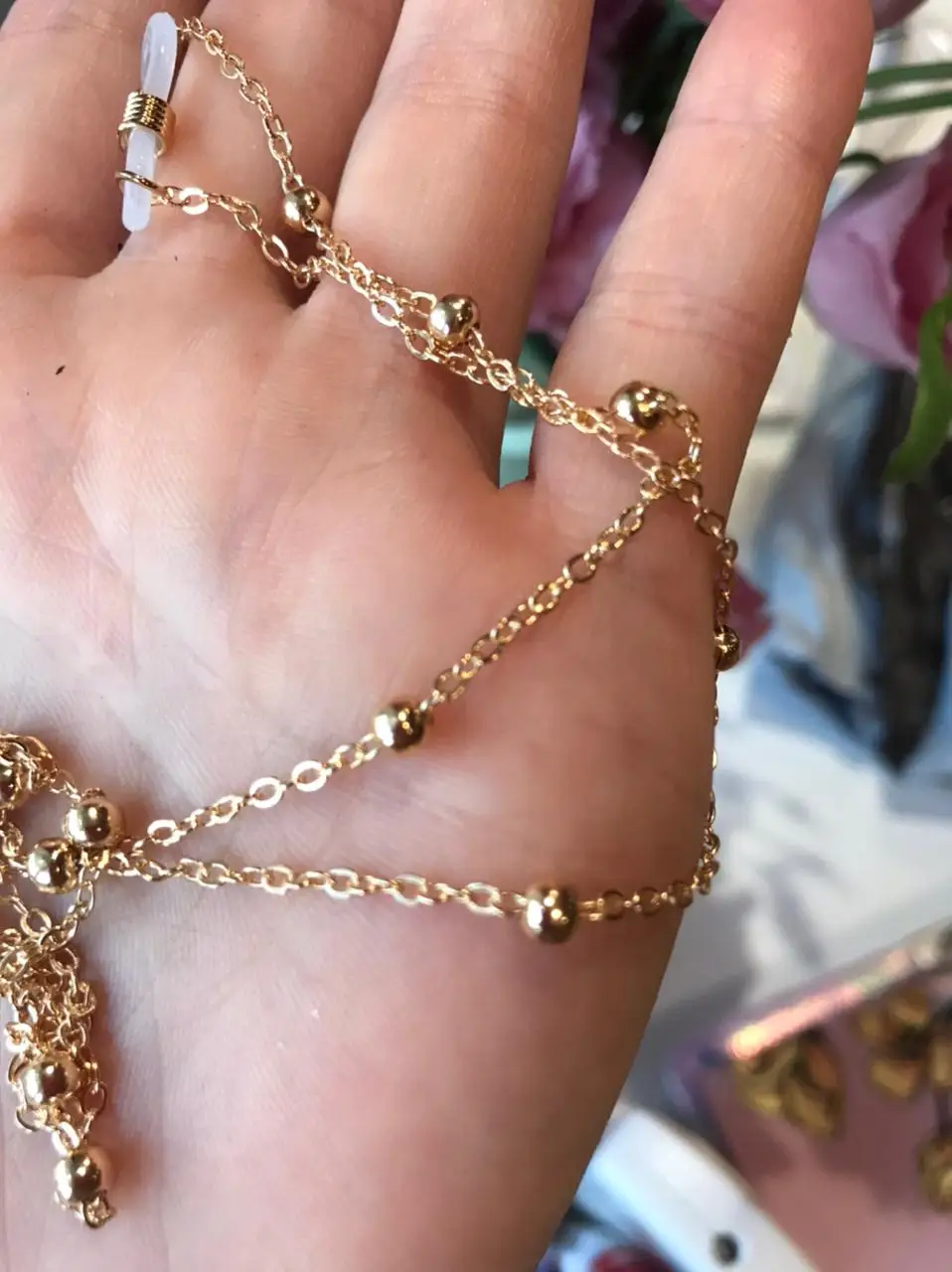 Очень тонкая цепочка, внешне красивая но для очков ненадежная