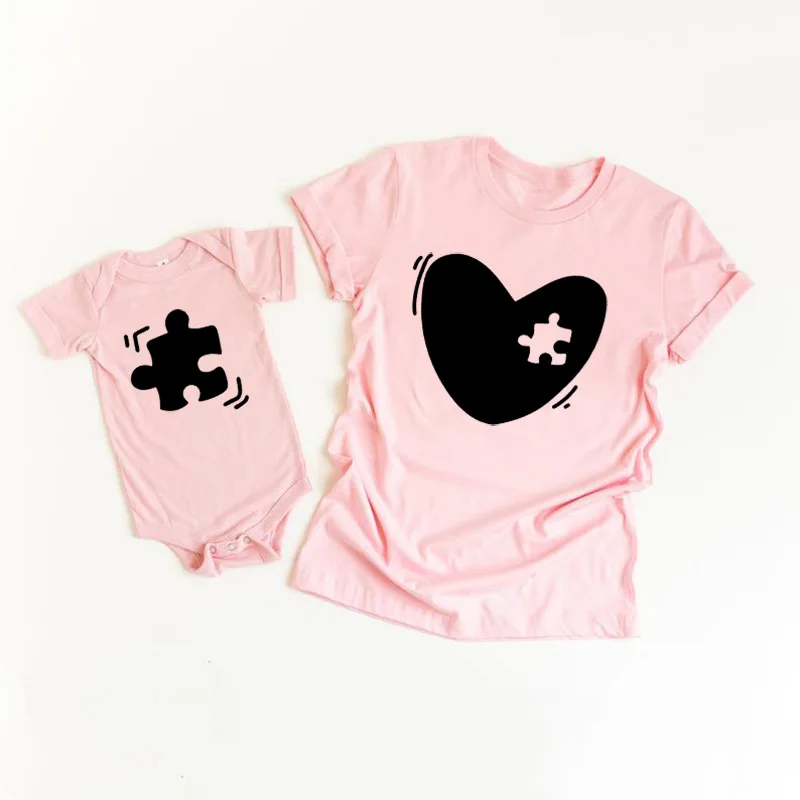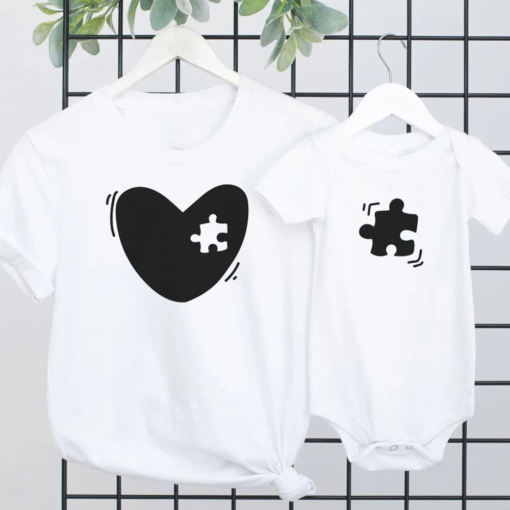 Мама ребенка одинаковые футболки и цельный Комплект для мамы и дочки, наряд в форме сердца паззл Комплект Baby Shower подарок для папы, мамы одежда мини