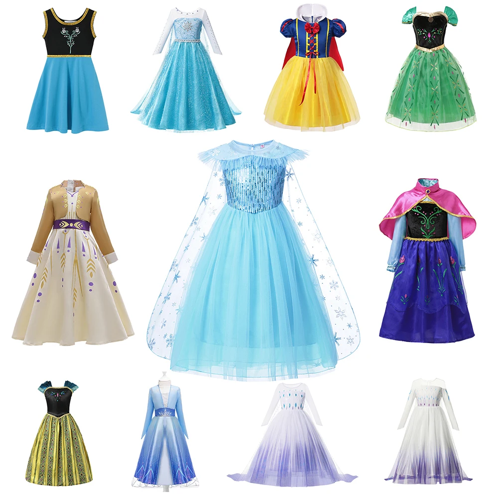 Платье Анна, Эльза, нарядная одежда, Цветочное платье на день рождения для девочек, детское платье принцессы в виде снежинки на Хэллоуин, костюм для косплея