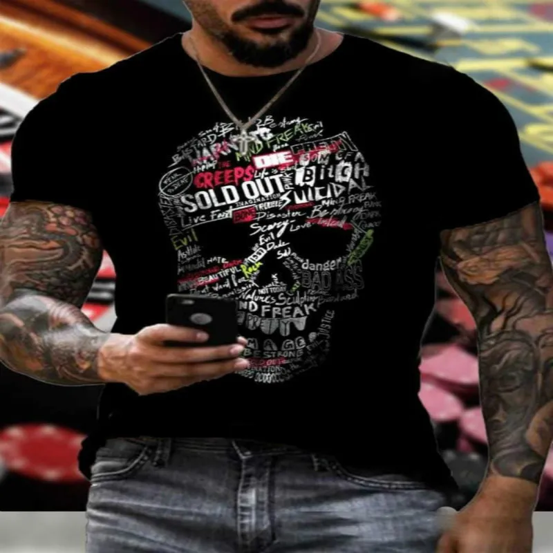 Мужская футболка с 3D-принтом черепа и орла, повседневный короткий Свободный пуловер большого размера, лето 2021