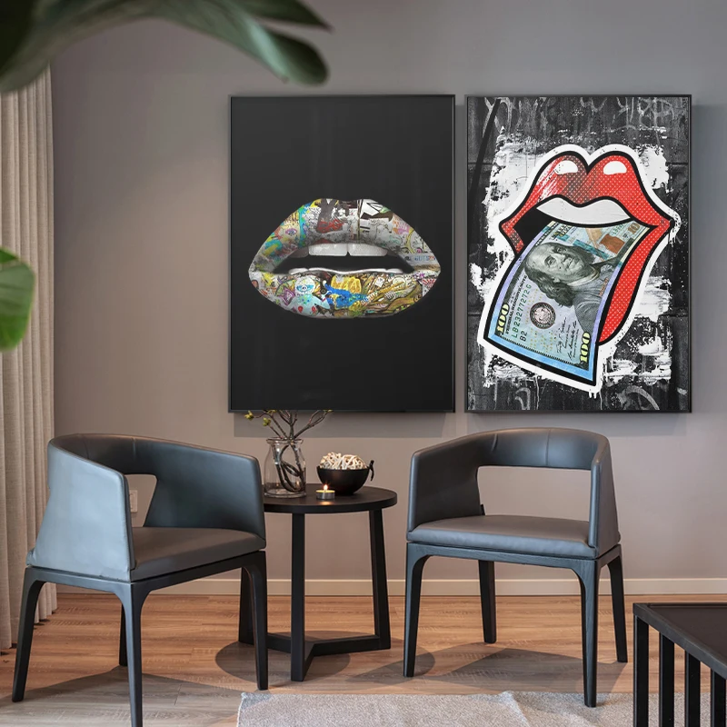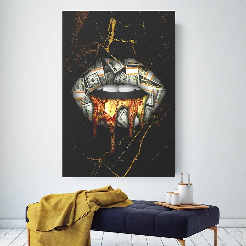 Уличного граффити средства ухода за губами деньги холст картины маслом Картина современного искусства Гостиная Спальня Wall Art Украшение постер с изображением фрески