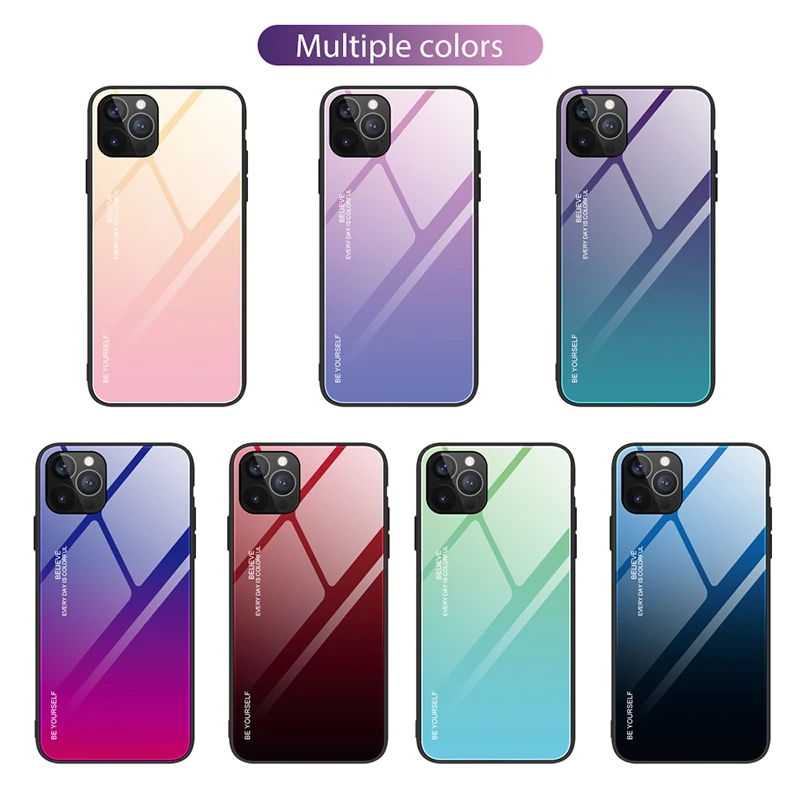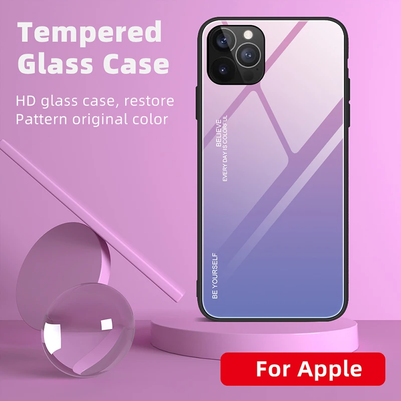 Градиентная расцветка; Высота закаленное стекло чехол-накладка для телефона чехол для iPhone 12 Pro Max 11 XR XS X 7 8 Plus 6 6S Plus SE 2020 Анти-Царапины чехол