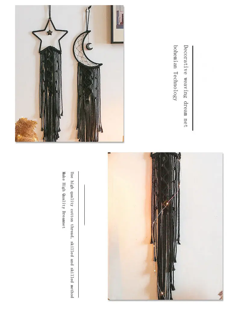 Скандинавский лунный макраме Ловец снов черная луна Бохо Декор сад подростковый декор дома Гостиная Спальня украшение стен