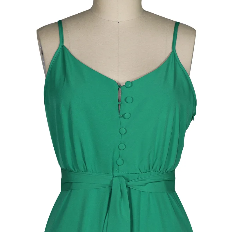 Женское платье на бретельках с поясом, повседневное элегантное платье составного кроя с V-образным вырезом в пляжном стиле, модель C2636 на лето, 2021