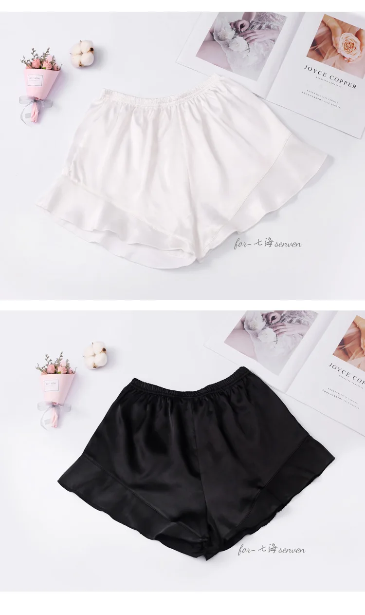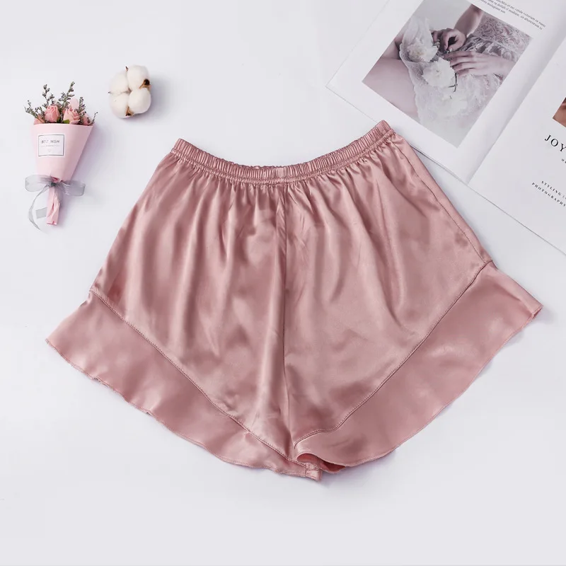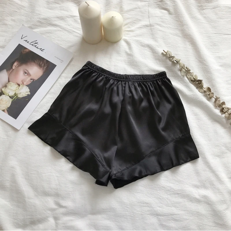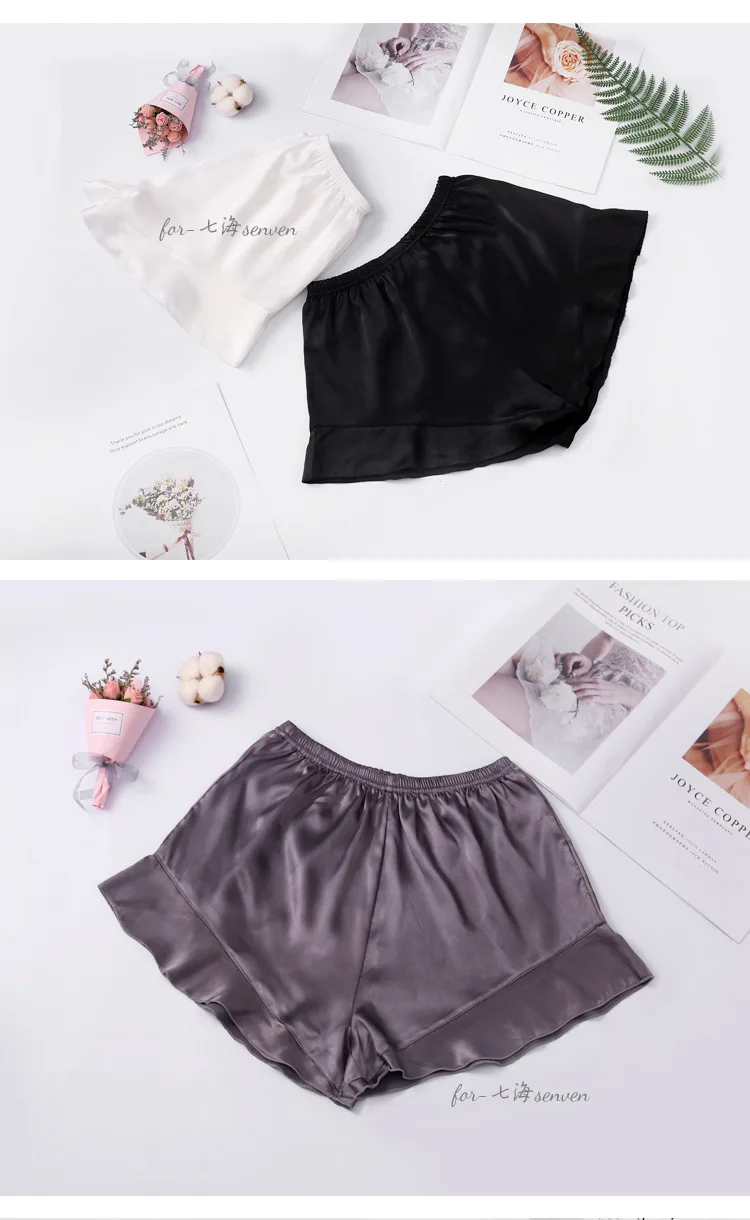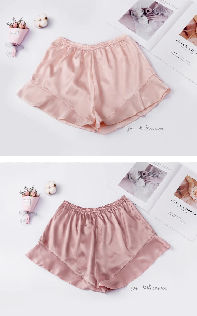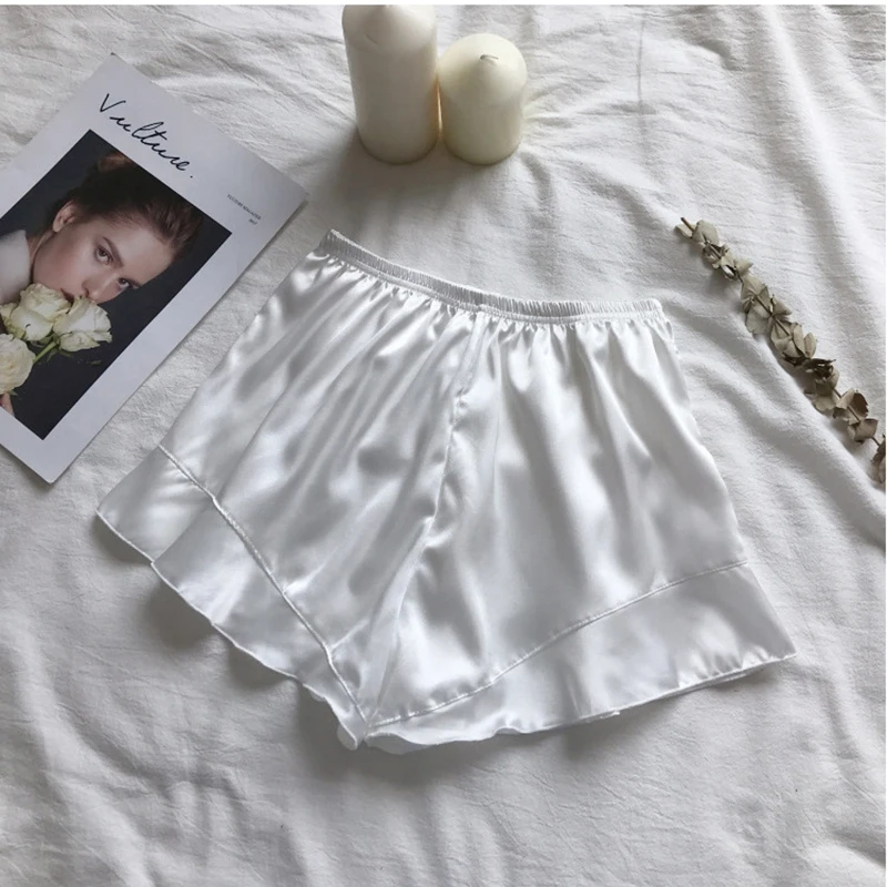 Шорты женские атласные с оборками, пикантная Домашняя одежда, Мягкие Бесшовные с эластичным поясом, нижнее белье, пижамные шорты, лето