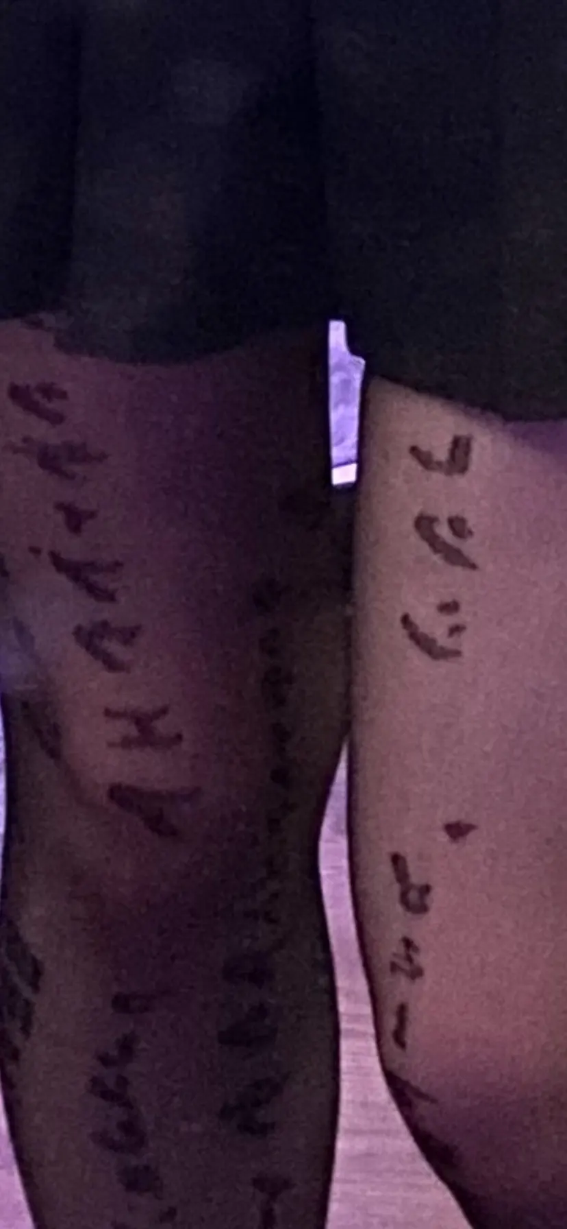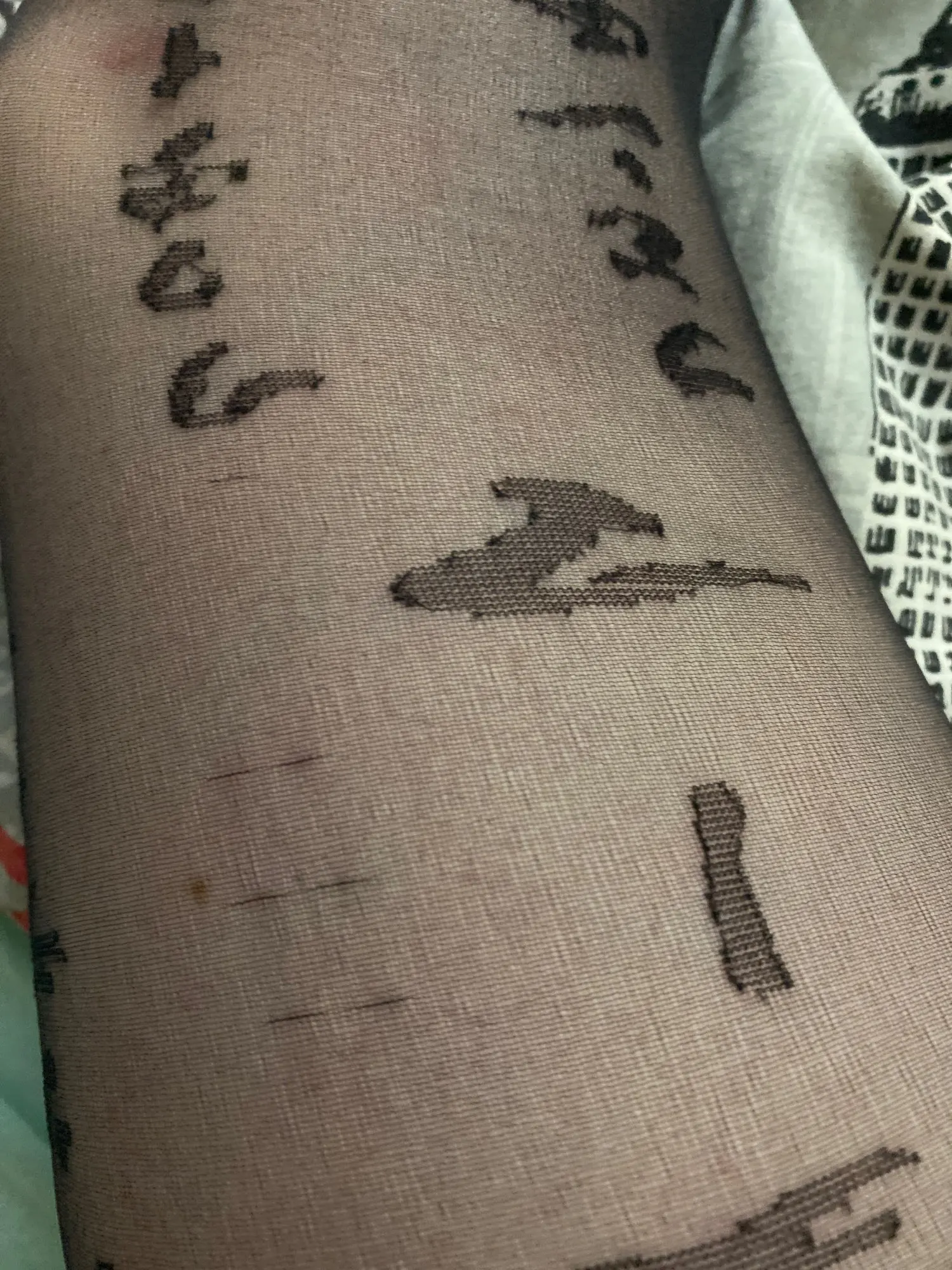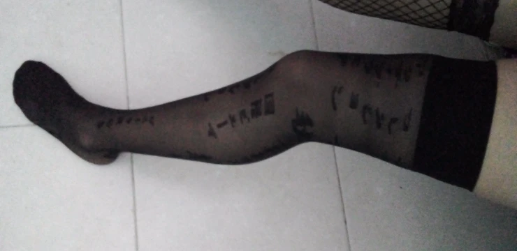 Чулки хорошие, прочные, печать букв немного неровная и размытая, но терпимо. Резинка тугая, может, даже слишком.