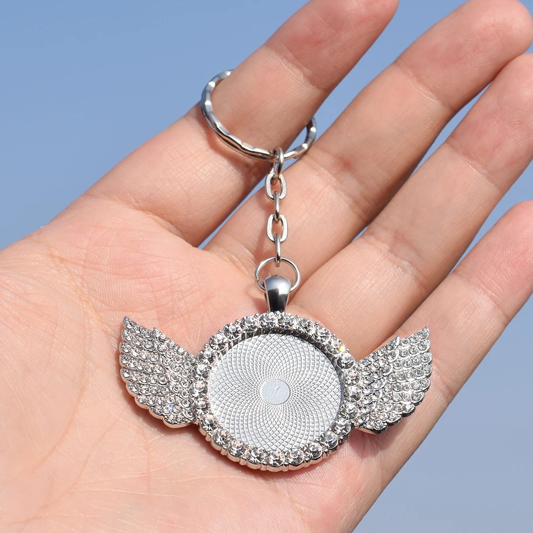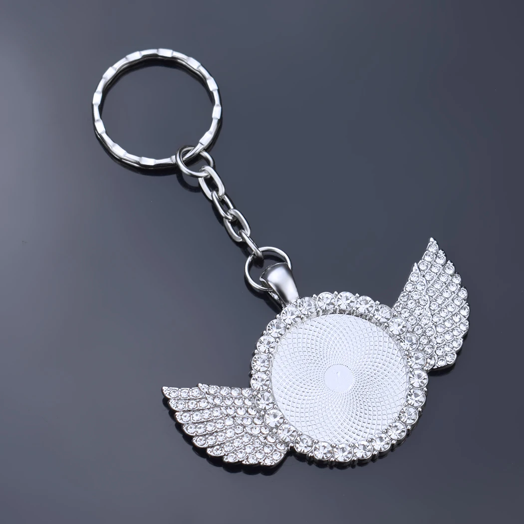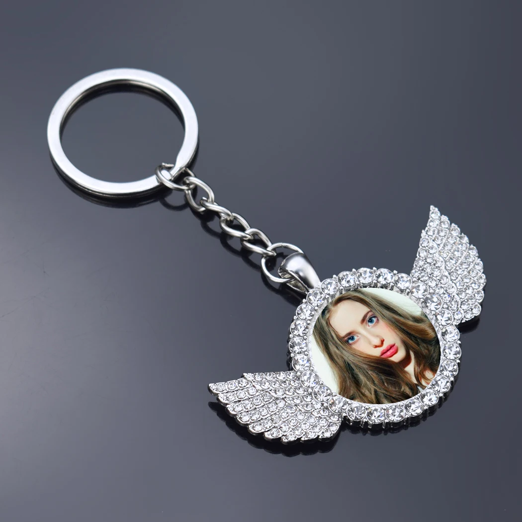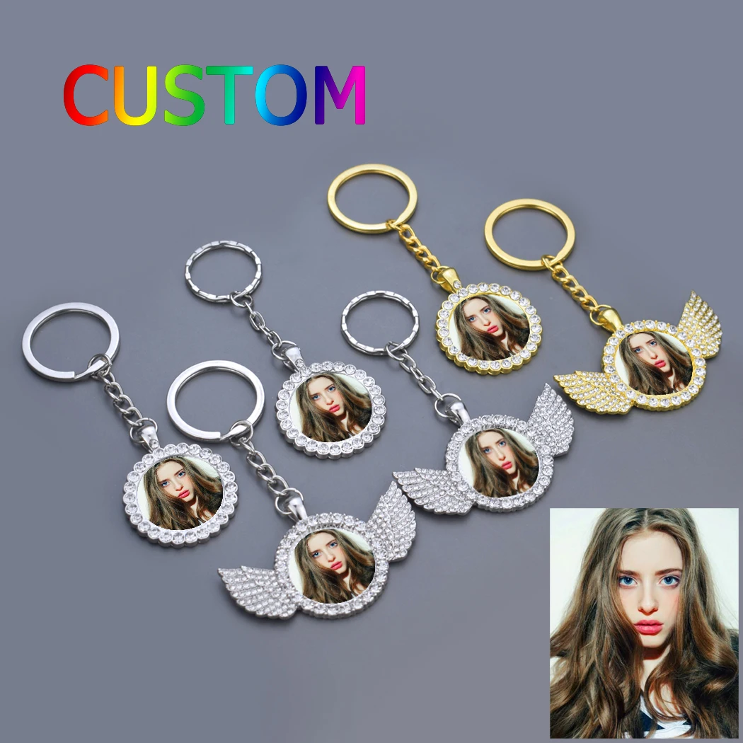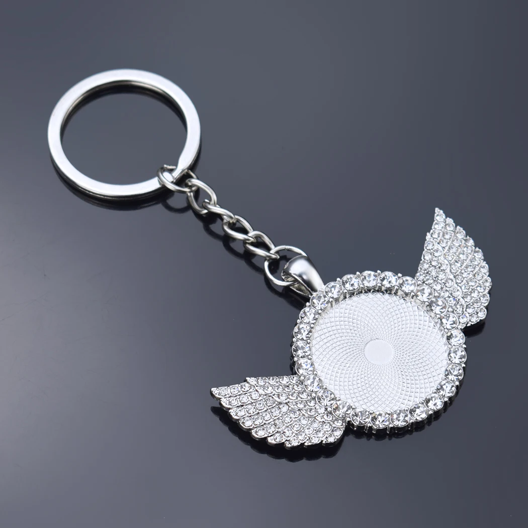 Брелок для ключей с логотипом на заказ, очаровательный стеклянный кабошон с подвеской в виде крыла ангела, Ювелирное Украшение для мужчин и женщин вечерние ний подарок