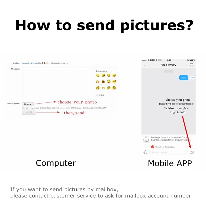 Это индивидуальный продукт. Нам нужно, чтобы вы предоставили свое изображение или текст. Пожалуйста, отправьте ваше изображение или текст непосредственно в разговоре, иногда я дам вам увидеть круглый образец. Если вы думаете нормально. Мы начнем обработать ваш заказ, если вы не ответите в течение 2 дней. Это означает, что вы согласны со мной по умолчанию. Мы также начнем обработать ваш заказ. Пожалуйста, поймите