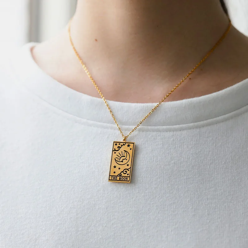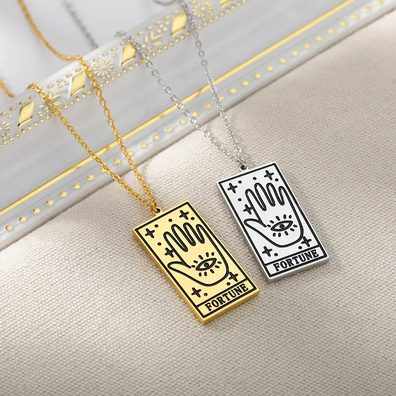 Ожерелья с карточками Tarot для женщин, колье из золотой нержавеющей стали с изображением мира, солнца, луны, глаз, звеньев, Винтажные Украшения BFF