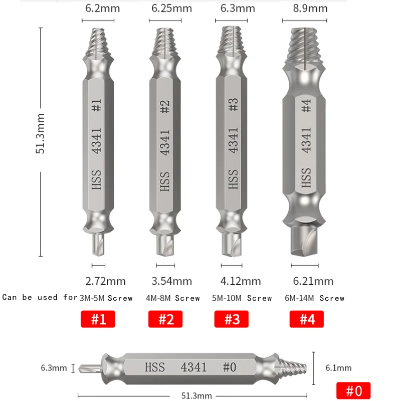 5 шт., двухсторонние экстракторы для поврежденных болтов