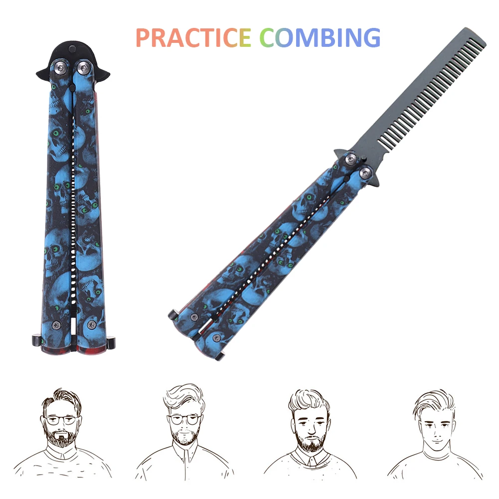 Бабочка тренировка расчески парикмахер нержавеющая сталь Винтаж Скелет складной нож практика Расческа Щетка парикмахерские Стайлинг салонные инструменты