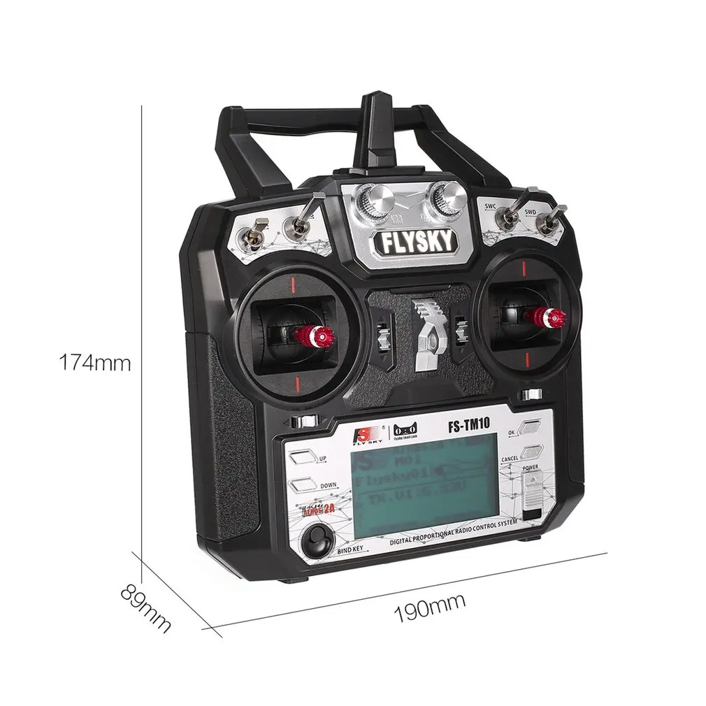 Особенности:1. AFHDS: супер активные и пассивные возможности анти-помех.2. Низкое энергопотребление: очень низкое энергопотребление и высокая чувствительность приемника.3. Получение данных: может собирать данные от температуры, высоты и многих других типов датчиков, калибровки сервопривода и поддержки i-BUS.4.2.4GHz: Увеличьте способность анти-помех и передавайте расстояние дальше5. Совместимость с: Этот приемник совместим с FS-i6X, FS-i4, FS-i6, FS-i10, FS-GT2E, FS-GT2G передатчиком.Описание:1. Это Flysky 2,4G FS-TM10 RC передатчик2. С AFHDS, который предлагает супер активные и пассивные возможности анти-помех, очень низкое энергопотребление и высокая чувствительность приемника.3. Это хороший выбор для вас.Спецификация:Бренд: FlyskyХарактеристики передатчика:Каналы: 6-10 (по умолчанию 6)Тип модели: фиксированное крыло/планер/вертолетДиапазон RF: 2,408-2,475 ГГцМощность RF: <20dBmРадиочастотный канал: 135Полоса пропускания: 500 кГц2,4 ГГц система: AFHDS 2A / AFHDSТип модуляции: GFSKРазрешение ручки: 4096Предупреждение о низком уровне напряжения по уровню поверхности: <4,2 VПорт DSC: порт PS/2Заряжаемый: нетАнтенна: (двойная антенна)Питание: 4 батареи AA (не входят в комплект)Дисплей: прозрачный дисплей STN, ЖК-экран 128*64, VA 73*39 мм, ЖК-дисплей с белой подсветкойОнлайн обновление: ДаВес: около 402 гРазмер: 190*174*89 мм