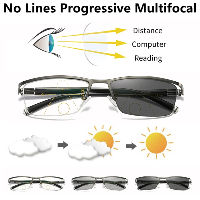 2021 на открытом воздухе с фотохромным эффектом считывание очки Для мужчин прогрессивные с защитой от УФ-светильник, пол-уоправа, оттенок солнце пресбиопические очки