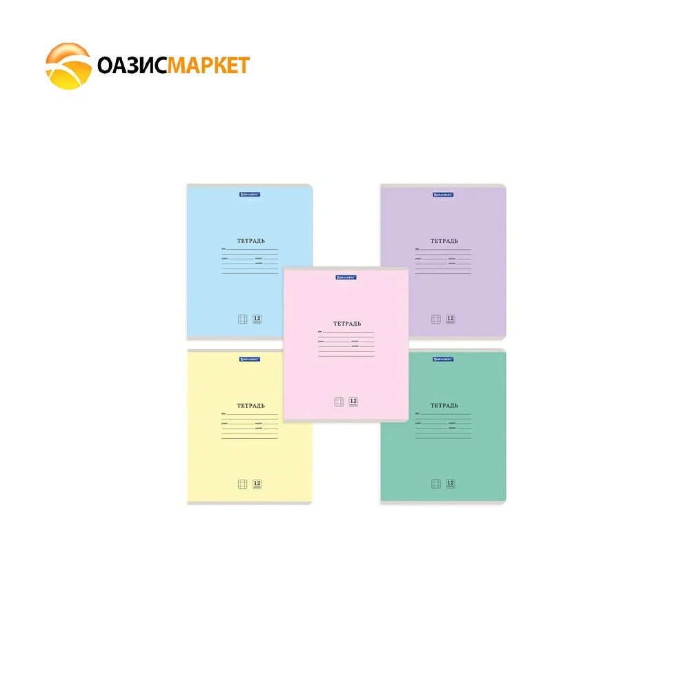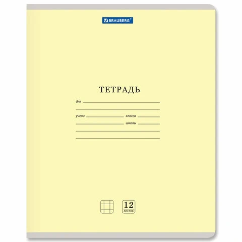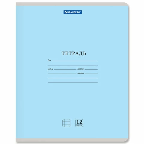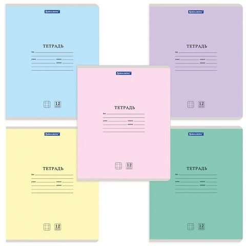 Тетрадь BRAUBERG 12 л. КЛАССИКА NEW, клетка, обложка картон, АССОРТИ без выб. (5 видов)