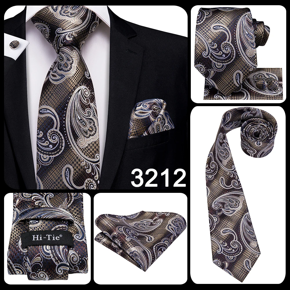 Hi-Tie 100% шелк роскошные мужские галстуки с цветочным рисунком черные золотистые Галстуки ступейсли галстук Карманный квадратный набор запонок мужской галстук для свадебной вечеринки