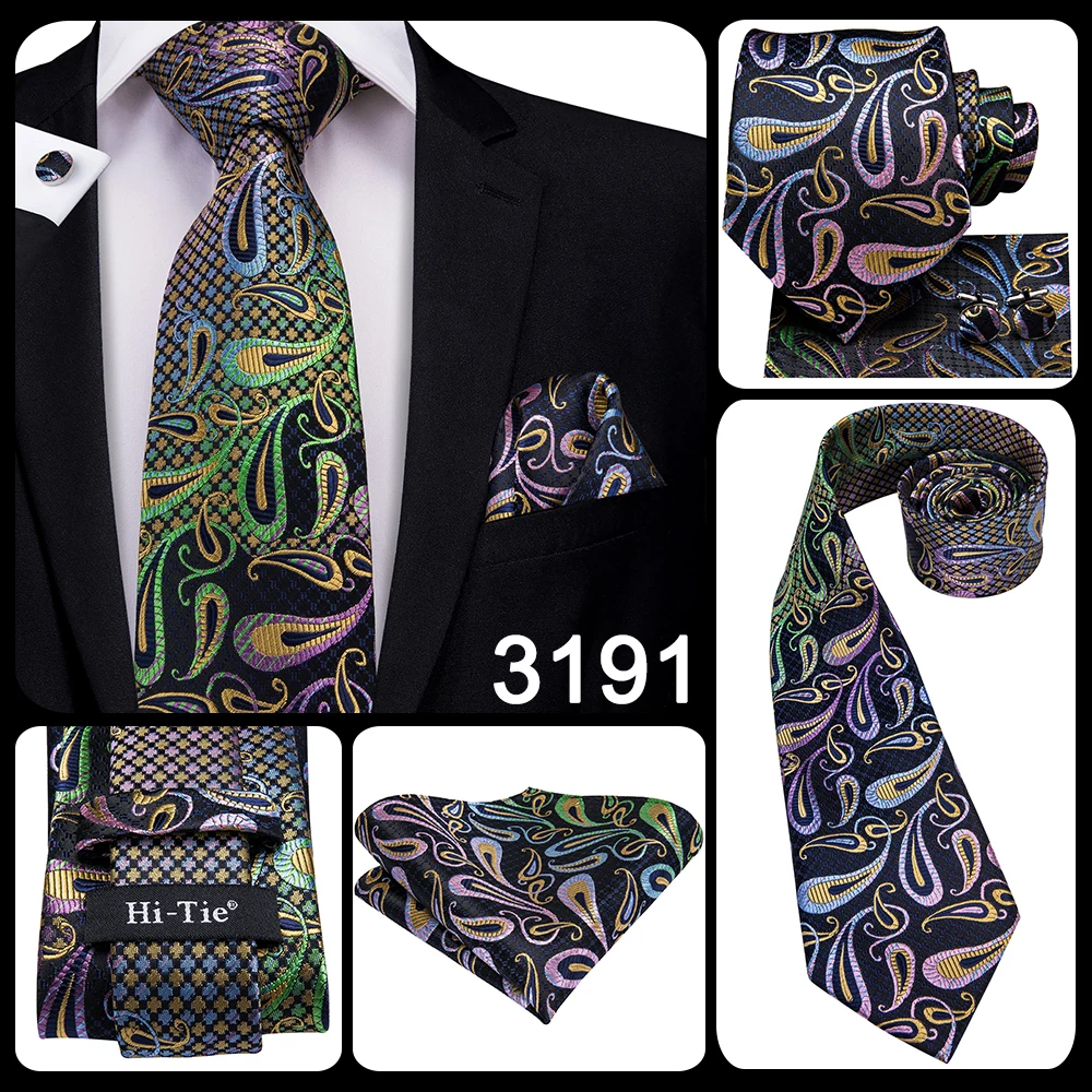 Hi-Tie роскошные шелковые мужские галстуки Цветочные Пейсли запонки...