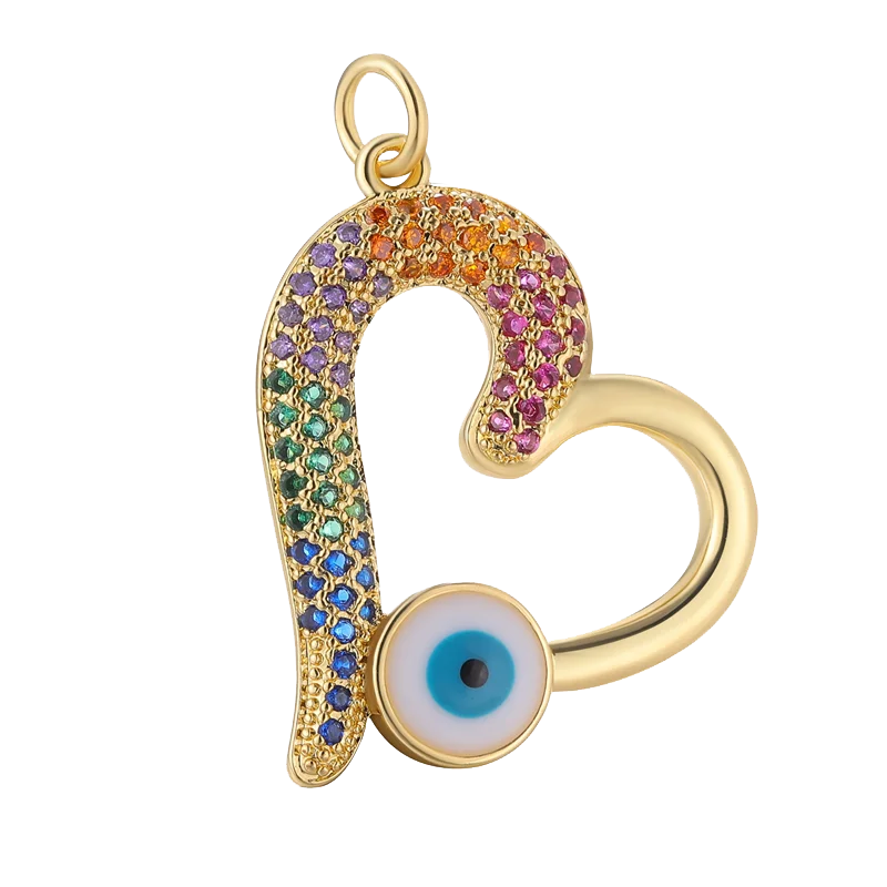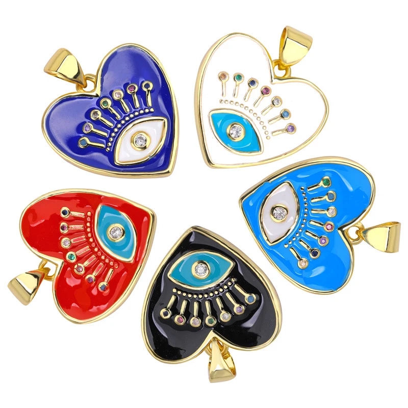 Juya ручной работы Радужный Цирконий Золотая Любовь Сердце греческий сглаз Эмаль Подвески для DIY подвесной браслет, ожерелье принадлежности