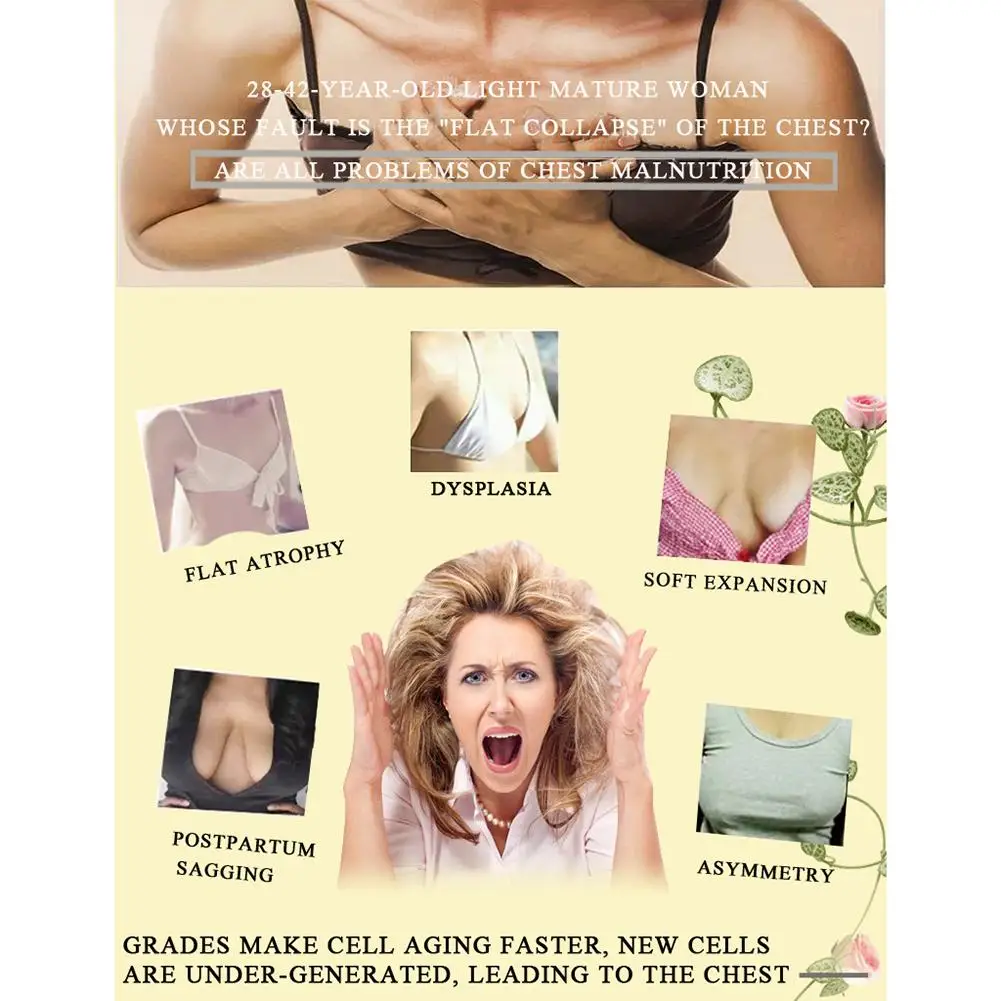 Примечание:1. Разные женщины имеют различные эффекты, поэтому вам нужно терпеливо ждать при использовании.2. Два раза в день, один раз утром и один раз вечером.3. Лучше использовать после купания.4. Смотрите эффект увеличения груди в течение 7-30 дней