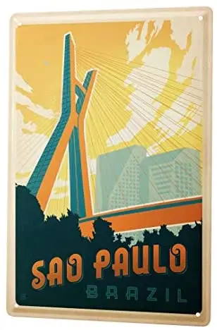 Современный домашний декор для гостиной, логотип World Tour, Бразилия, Сан-Паулу, Бразилия, кабель-стоп, металлическая пластина, 8x12 дюймов