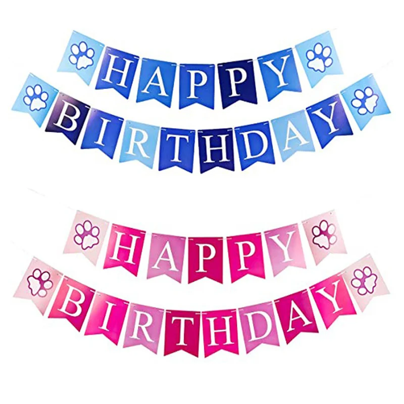 Собака Лапа тема Синий Розовый День рождения баннер Вечеринка флаг женственное качество животные аксессуары