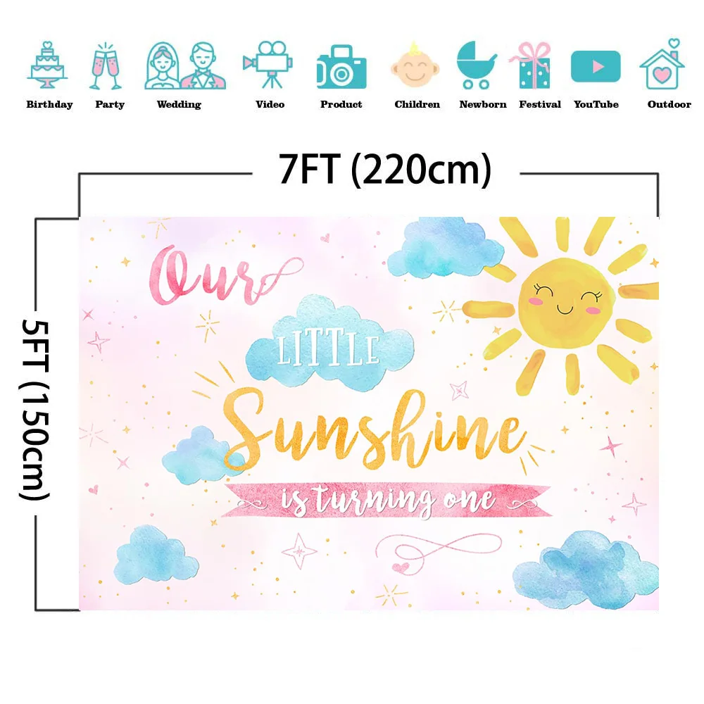 Фон для фотосъемки детей на 1-й день рождения с изображением солнечных лучей синих облаков баннера на день рождения фон для фотосъемки Летняя Вечеринка торт стол Декор