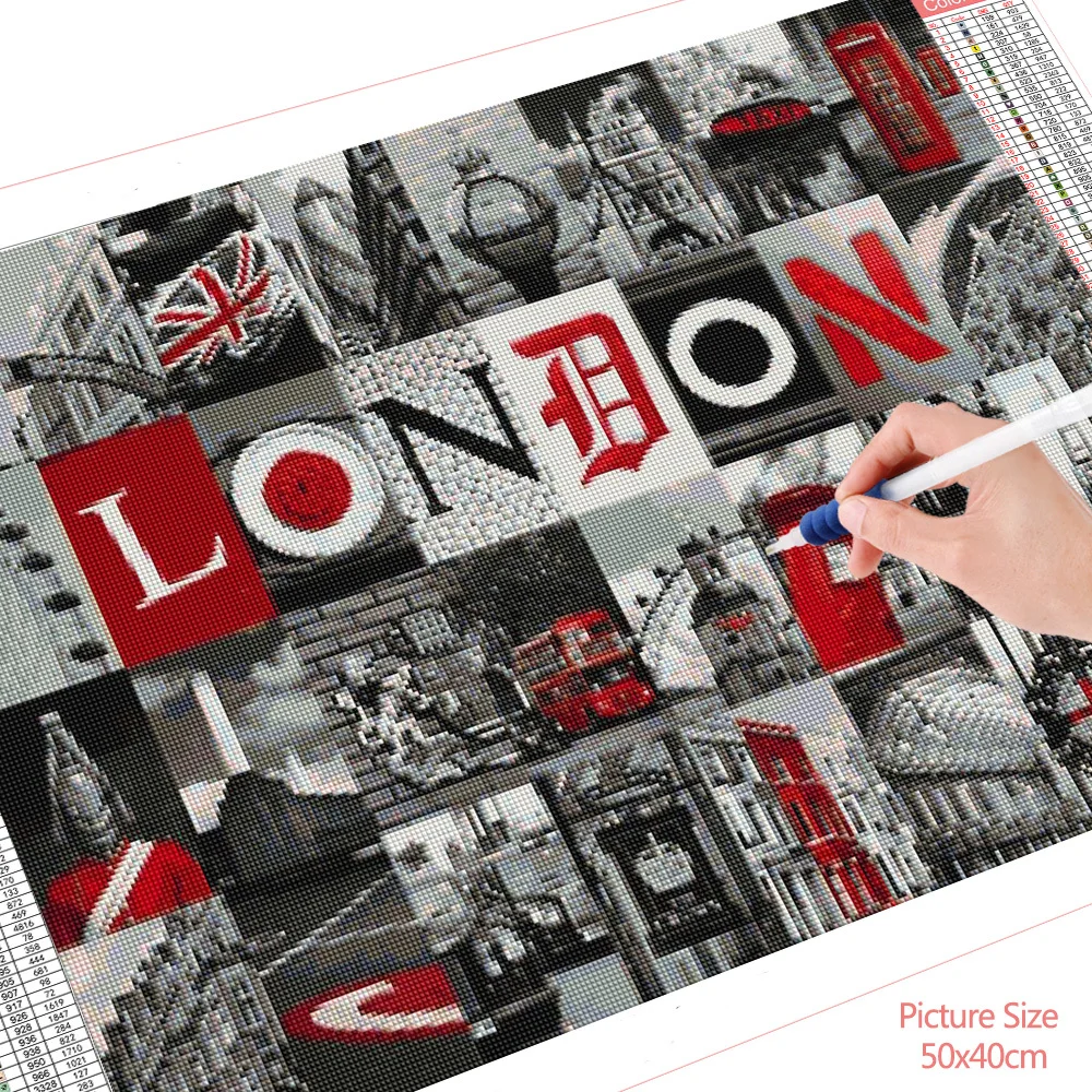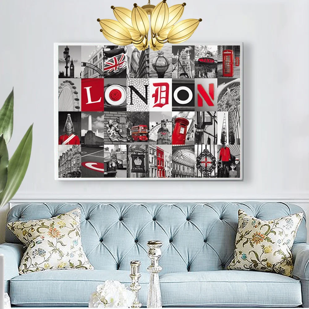 HUACAN 5d алмазная живопись полный дрель Лондон вышивка пейзажа черный, красный город мозаика город здание пейзаж домашний декор