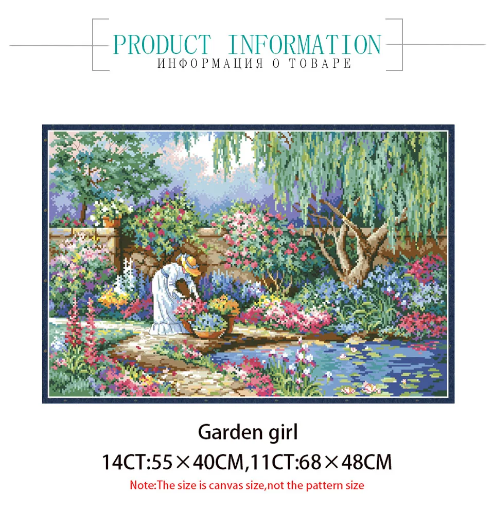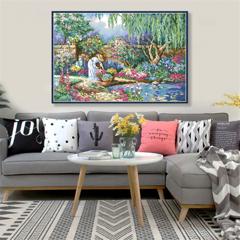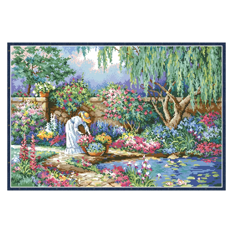 Наборы для вышивки крестиком для девочек в саду, набор для рукоделия из ткани 11CT 14CT, ручная работа, украшение для дома, картины