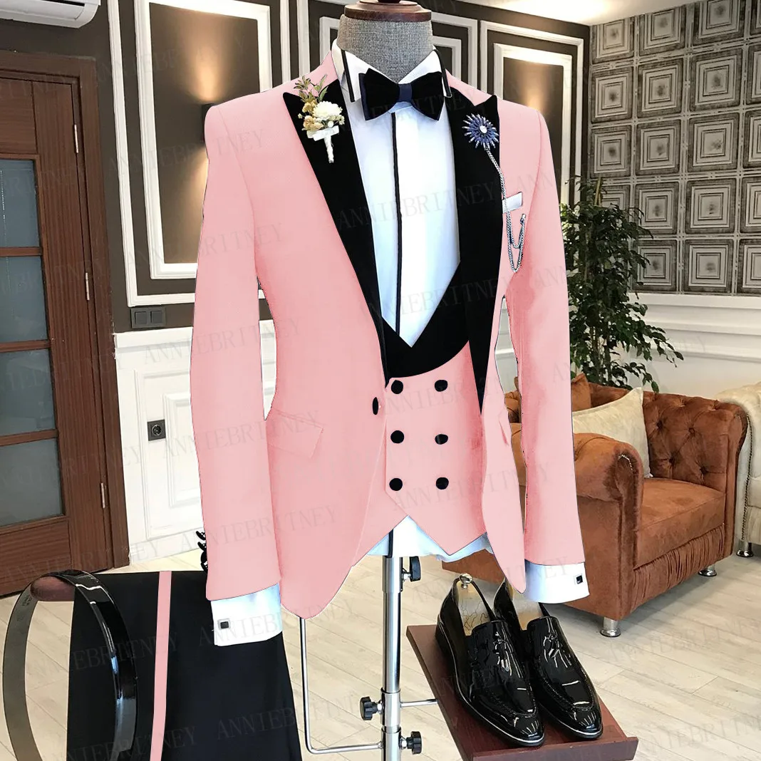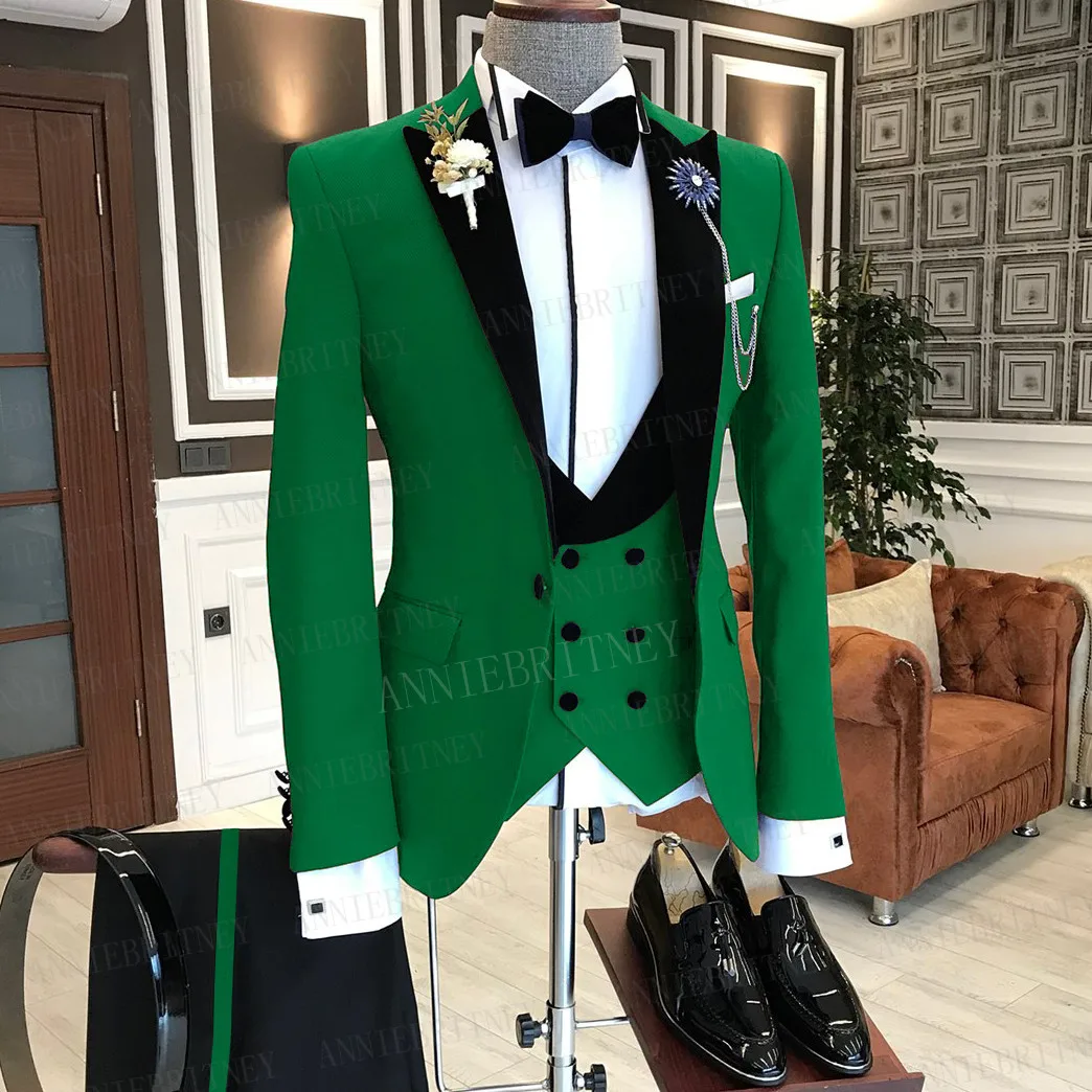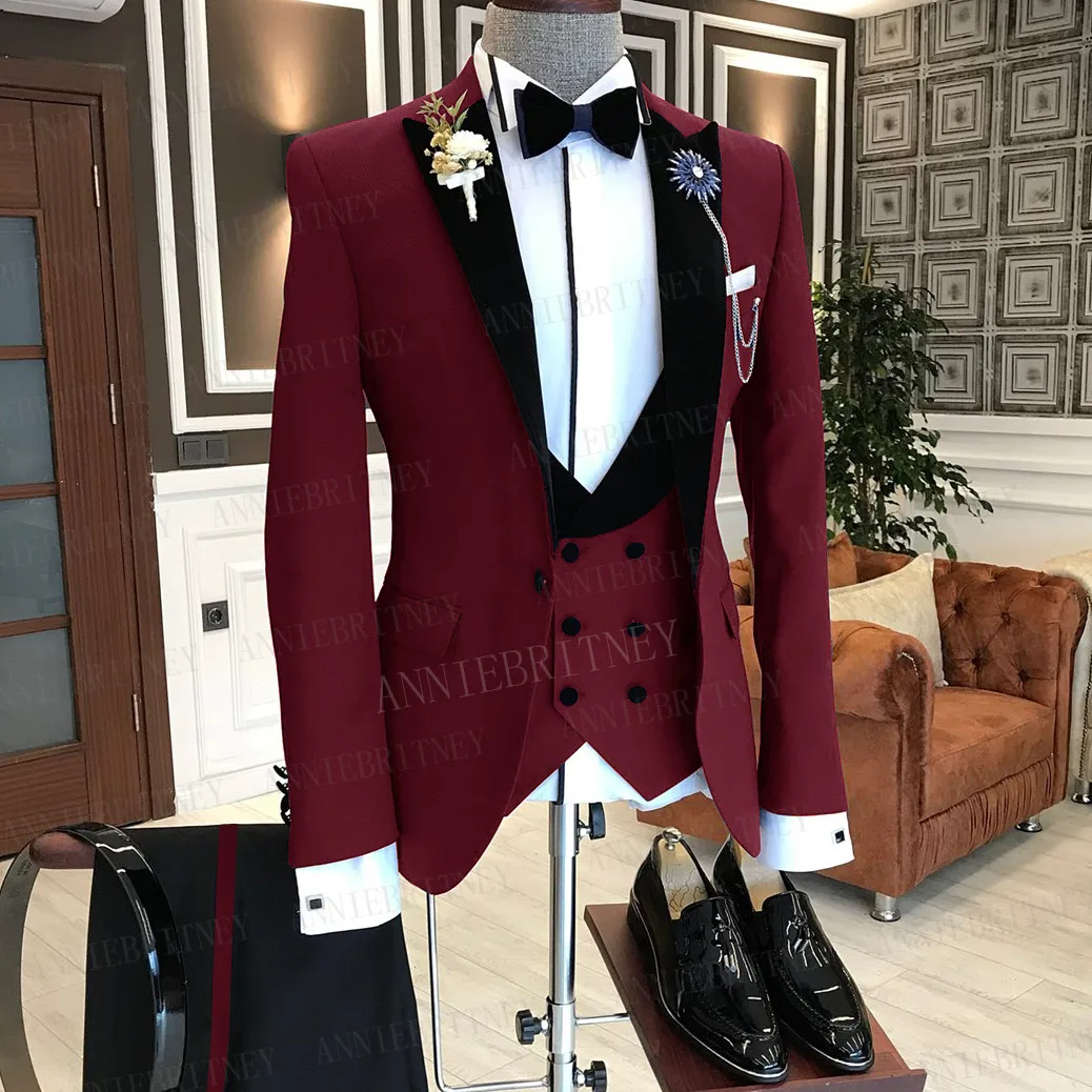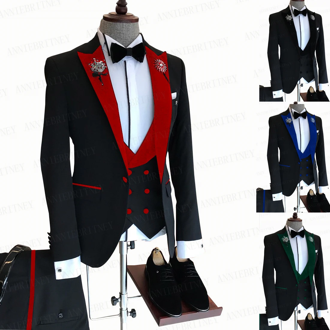 Мужской бархатный костюм с лацканами, приталенный костюм для выпускного вечера вечерние свадьбы, смокинг, смокинг, пиджак, жилет и брюки комплект из 3 предметов