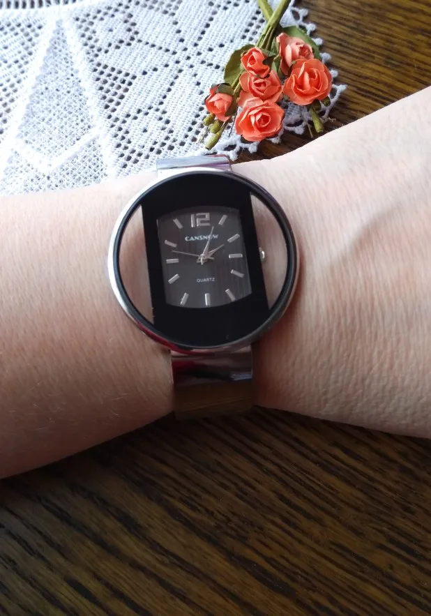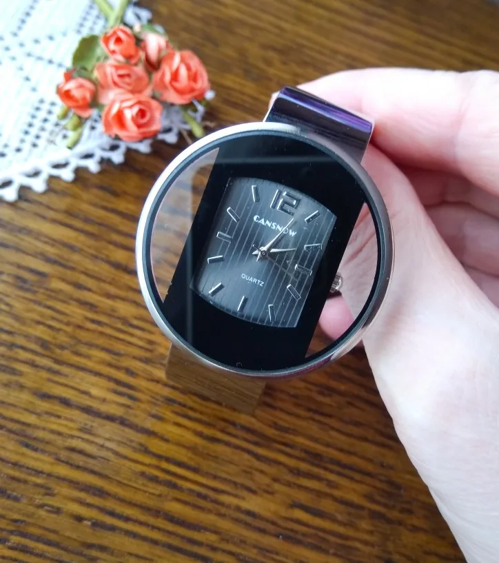 Описание Категории часов: женскиеСтиль часов: Повседневный/Модный/платье ДайлФорма циферблата: круглаяТип механизма: кварцевыйТип дисплея: аналоговый ПовязкаМатериал браслета: нержавеющая стальТип застежки: отсутствует Размер и весДлина Часов: около 3 смДиаметр цилиндра: около 4,0 смШирина ремешка: около 1,8 смТолщина цилиндра: около 8 ммВес часов: около 50 г