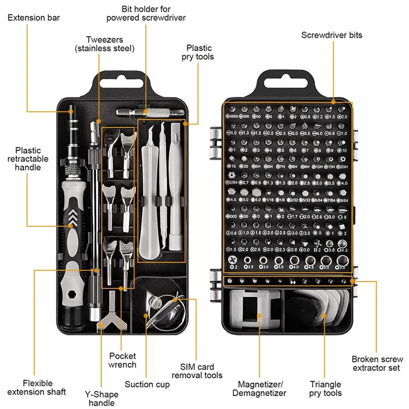 Профессиональный Набор прецизионных отверток WOZOBUY, мужские инструменты сделай сам, набор инструментов для ремонта 145115 в 1, инструменты для ноутбука
