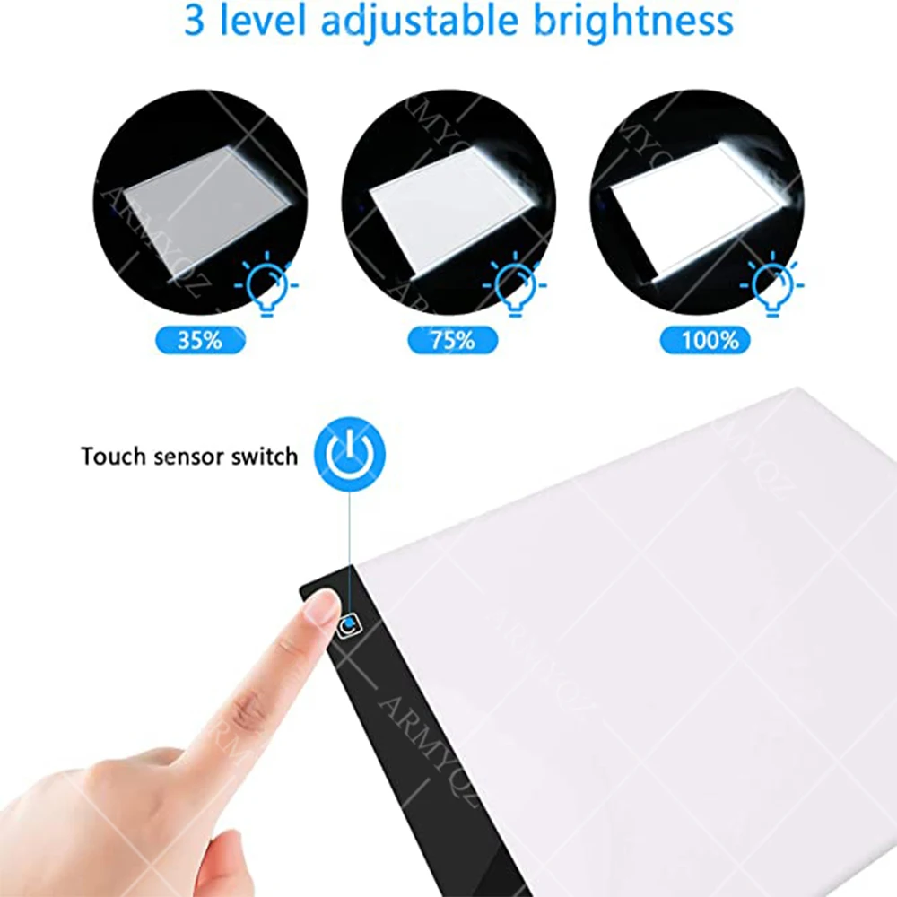 Добро пожаловать вARMYQZStoreУважаемые покупатели, наша внешняя упаковка: Воздушная колонка, поэтому, пожалуйста, не беспокойтесь о повреждении подарка, мы прилагаем все усилия, чтобы улучшить, цель-удовлетворить всех клиентов. Как этот продукт, я желаю вам счастливой жизни.☀[Светильник вес и Портативный] Этот ультратонкий светильник коробка светильник вес, стильный, гибкий и легко носить с собой. Размер: 30x30 см. Толщина составляет всего 0,16 дюйма; Это отличный подарок для друзей и детей☀[Регулировка яркости] Кнопка переключения яркости светодиодный светильник для отслеживания может регулировать три вида яркости: низкий светильник, нормальный светильник и сильный светильник. На панели нет теней, нет бликов, и копия отслеживания очень четкая, и светильник использует технологию защиты глазUSB [USB power] светильник коробка оснащен сенсорным дисплеем 1,5 м USB кабель, который может быть подключен к ноутбуку мобильный источник питания розетки, и т. Д. Легко работать и рисовать картину в любом месте☀【Предназначен для рисования и рисования 】 этот светильник для рисования подходит для трафаретной печати, двумерной анимации, каллиграфии, рельефа, рукоделия, переноса татуировок, покраски, шитья, стеклянного покрытия, шва, подушка для лампы для визуализации рентгеновского излучения[Безопасное использование]: этот держатель лампы изготовлен из высококачественных чипов, постоянного напряжения, постоянного тока, без мерцания, без излучения и безопасного использования.Примечания:Мелкие детали, не подходят для детей в возрасте до 3 лет.Требуется наблюдение взрослых.Примечание:1. Из-за разницы в светильник и изображения на мониторе фактический цвет товара может незначительно отличаться цвет предмета может быть s светильник ly отличаться от показанного на изображении.2. Из-за ручного измерения допускается разница в 1-3 мм.3. Спасибо за понимание.