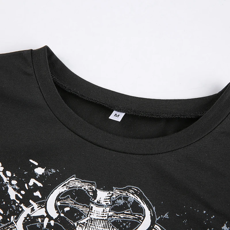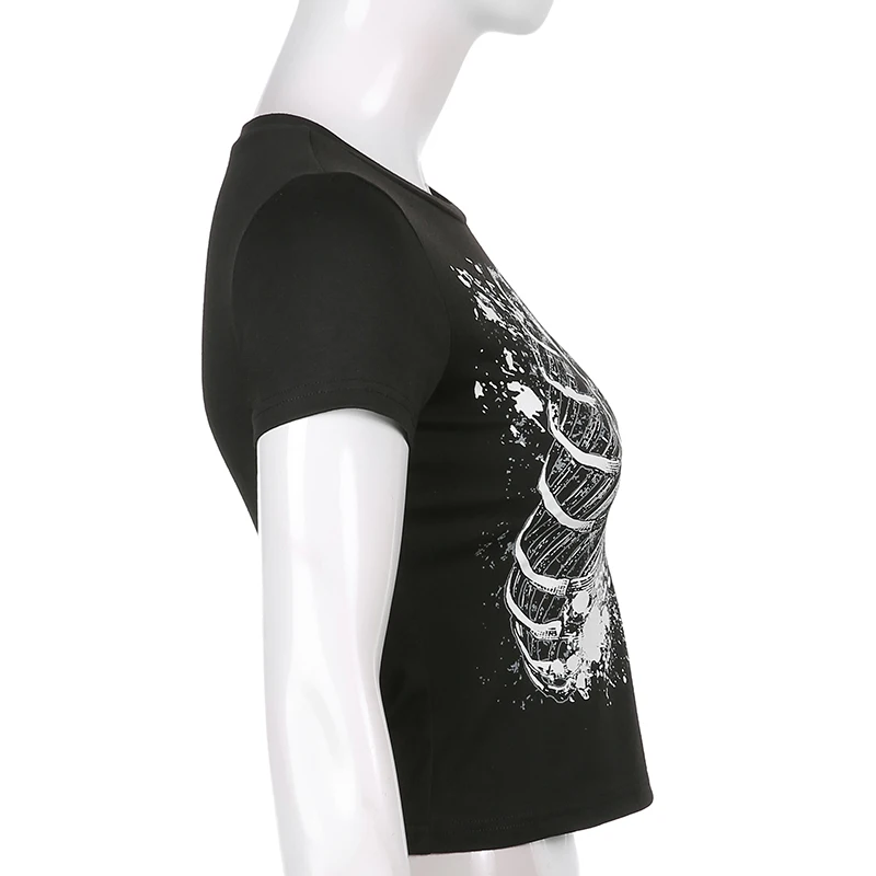 Укороченный топ с принтом рэпкоптера, готическая Черная футболка с коротким рукавом, эстетическая футболка, Женская пуловер с круглым вырезом, уличная одежда, летняя футболка