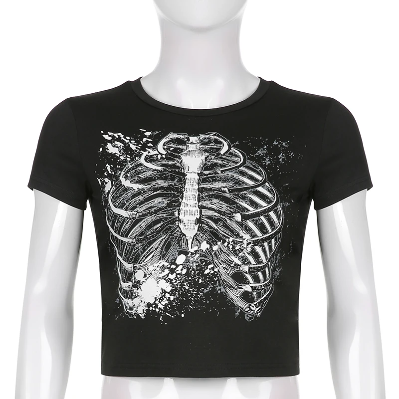Женская футболка с принтом скелета, в стиле Харадзюку, Готическая, ...