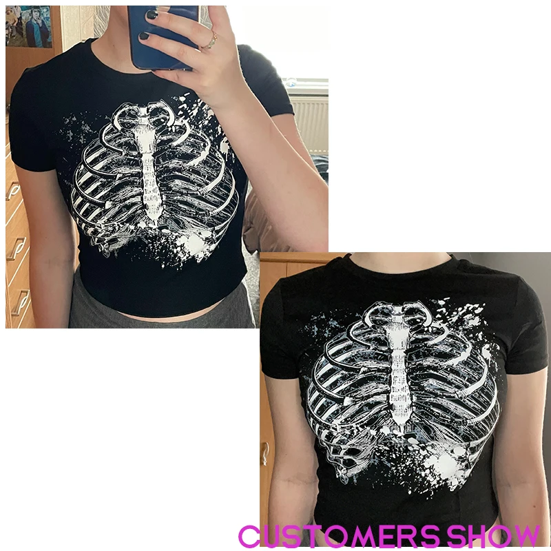 Женская футболка y2k, топы со скелетом, гранж, с графическим принто...