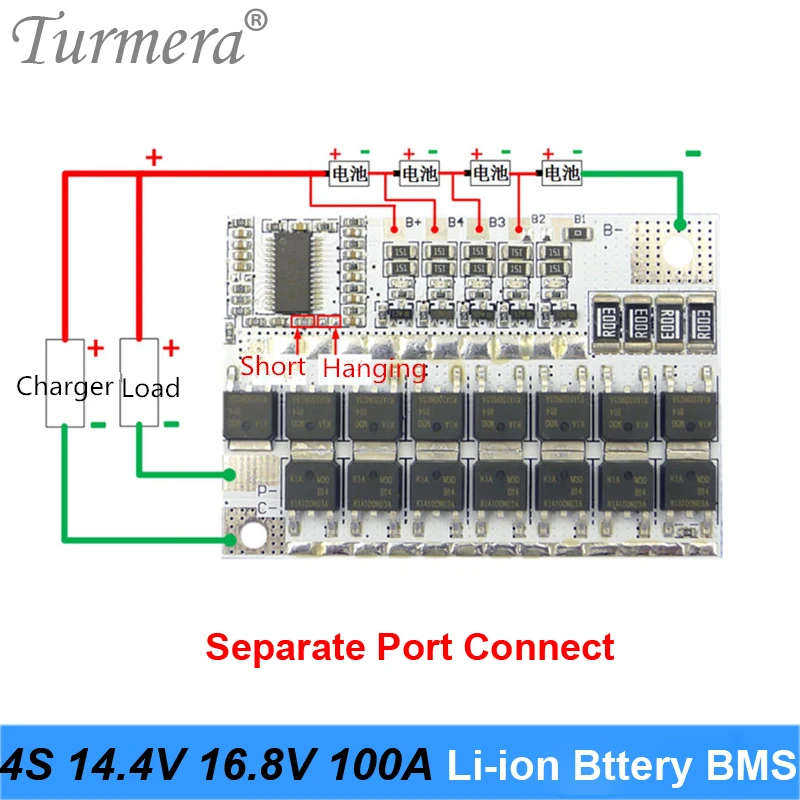 4S 14,4 V 16,8 V 100A BMS:Описание:1. Эта защитная плата 3s 4s 5s в общем использовании литиевая батарея Защитная плата (вы можете настроить для того, сколько струн будет использоваться), доставка по умолчанию является 4S тройной литий.2. Указанный чип, стабильная производительность, поддержка защиты от отключения, защита от перегрузки по току, защита от разрядки, защита от перезаряда, баланс и т. д.3. Широко используется для «одного порта» и «другого порта», плата защиты использует 15 мощных сверхнизких сопротивлений MOS (разрядка 8, зарядка 7), В том же режиме порта может поддерживать ток разряда 60A, зарядный ток 60A; Другой режим порта ток разряда 80A, зарядный ток 60A.4. Можно использовать для наладили. Трехкомпонентная литиевая батарея. LCO (3,7 V) аккумуляторные батареи и т. д.Параметр:Для литий-полимерный LiMnO защиты параметров (3,6 V/3,7 V)Защита от перезаряда батареи с одной ячейкой напряжение: 4,21-4,29 вЗащита от перезарядки аккумулятора с одной ячейкой напряжение: 4,14-4,24 ВЗащита от перезарядки защиты задержки: 1,5-2.5SЗащита от перегрузки батареи с одним аккумулятором напряжение: 2,72-2,88 вОдна ячейка батареи защита от избыточной разрядки защиты восстановить напряжение: 2,9-3,1 VЗащита от перезарядки ток: 100AЗащита от перегрузки ток: 100AЗащита от избыточной разрядки защиты задержки: 0,5-1.5SЗащита температуры: Да, есть интерфейс контроля температуры.Защита от отключения: ДаЗащита от нехватки: ДаЗадержка нехватки: 100-600 СШАРежим защиты от нехватки: Отключение нагрузки.Ток контактного разряда: 80ASynopline ток разряда: 60AТок зарядки: 60AФункция баланса: ДаАмпер баланс (ток) : 60 мАТочность баланса тока: 4,14-4,24 В