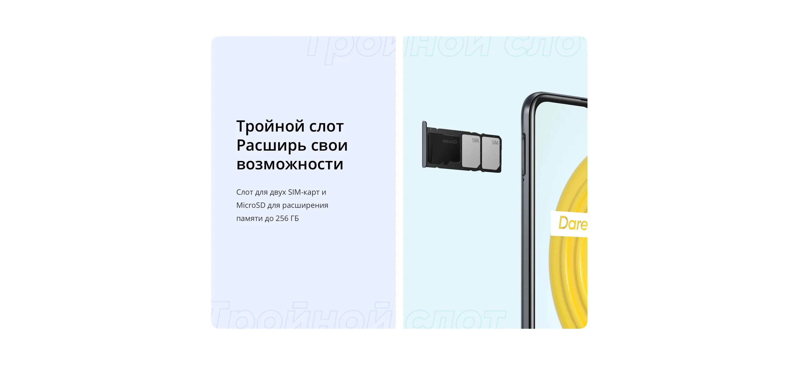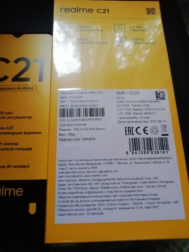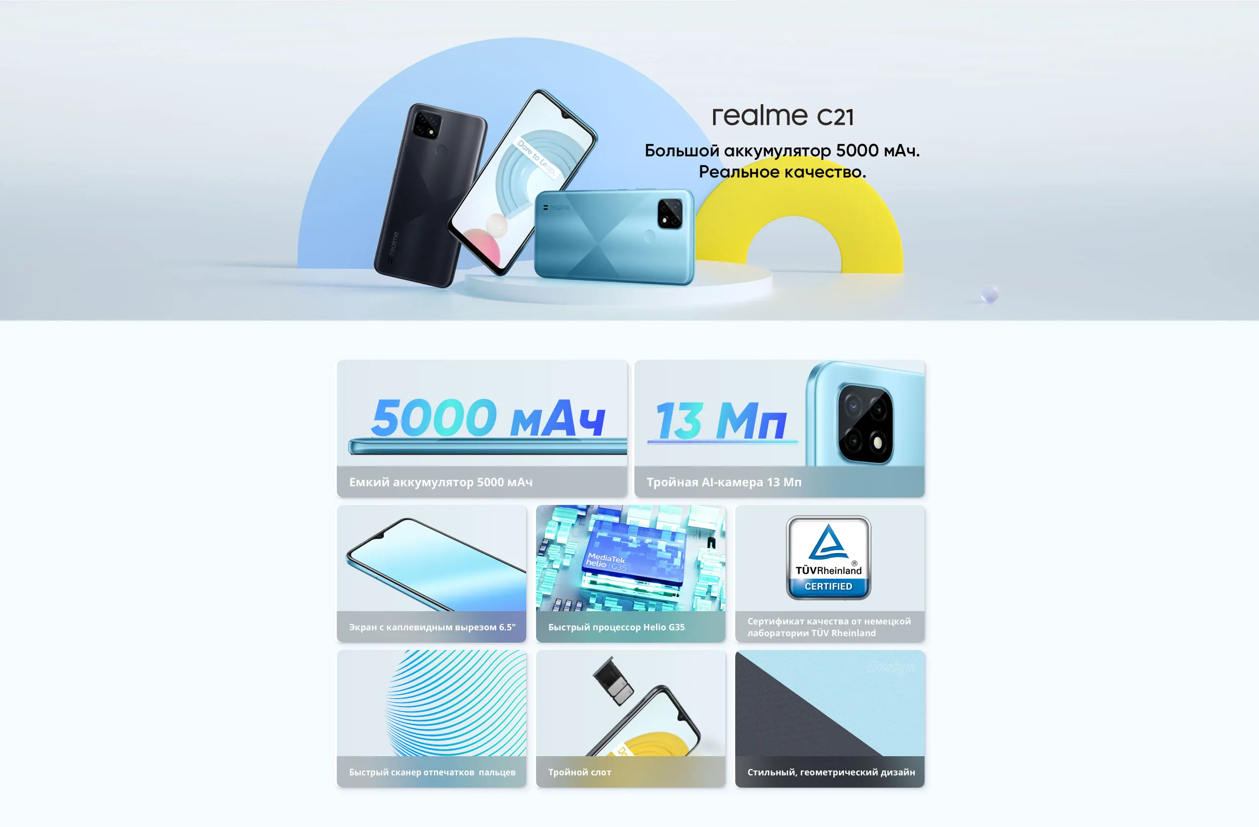 Смартфон realme C21 3+32ГБ NFC, Ёмкий аккумулятор 5000 мАч, Тройная AI-камера 13 Мп, Сканер отпечатков пальцев