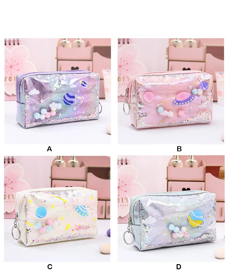 Kawaii Большой Вместительный блестящий чехол-карандаш со звездой, лазерная кожаная коробка для ручек, большая косметичка для девочек, подарок, школьные канцелярские принадлежности для путешествий из искусственной кожи