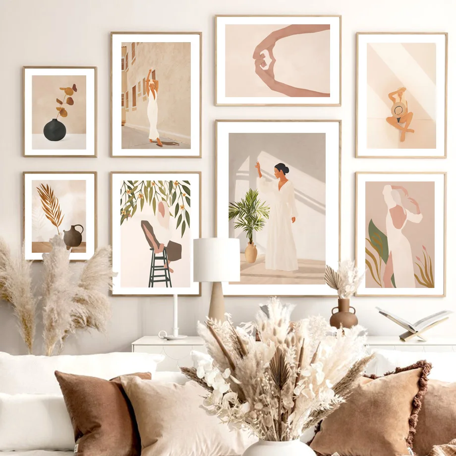 Бохо минималистичный абстрактный макияж для девушек, настенная Худо...