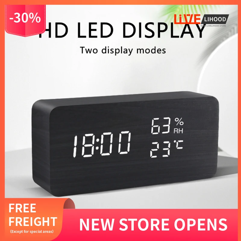 Деревянный светодиодный цифровой будильник с голосовым управлением, цифровой гигрометр, будильник с питанием от USBAAA, часы для украшения стола