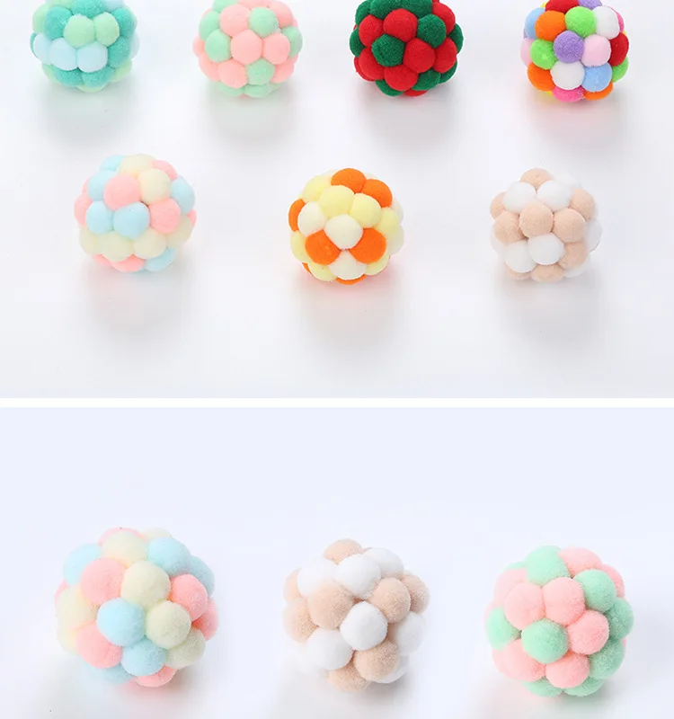 1 шт. товары для домашних животных, мяч для самовозбуждающихся кошек, Забавный мяч для кошек, плюшевый мяч-колокольчик, многоцветные сшиваемые Рождественские Цветные Игрушки для бросания кошек